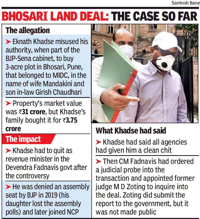 In his earlier statement to the ED, Khadse had denied any knowledge about the land deal after stating that it was executed by his wife and the son-in-law.