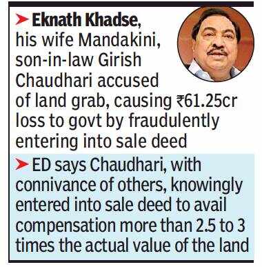 During investigation, it was found that Chaudhari claimed the source of funds to purchase the property as loan from some companies. However, these funds were layered and routed through shell companies, which are either dysfunctional or ceased to exist later on, the ED said.In Chaudhari’s remand application, the ED stated the land was acquired by MIDC and there were various industries on the plot, so it was not possible to execute the sale deed with its original owner Ukani in April 2016 for Rs 3.75 crore. The ED alleged Khadse and others made illegal changes and alteration in government record to execute the deal.