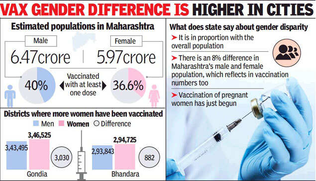 MUMBAI: Fewer women in the state have taken the vaccine against Covid-19 compared to men, amounting to a difference of over 3%. The gender disparity in vaccination could be wider within districts and may be growing with more doses administered, experts said.
