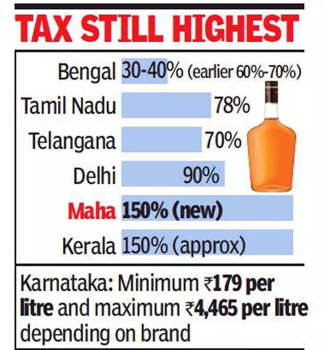 MUMBAI: Imported liquor is set to become considerably cheaper in Maharashtra with the state slashing excise duty on this segment by a steep 50%—from 300% to 150%—in an attempt to crack down on smuggling and bootlegging.
