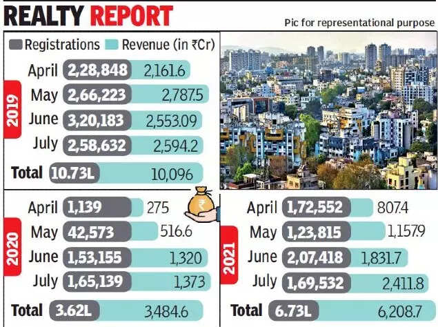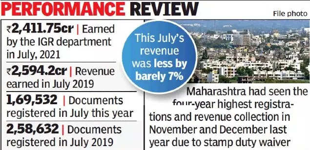 PUNE: Riding on high-value transactions, the state registration department has this year achieved 93% of the July revenue target of 2019, or the pre-pandemic time.