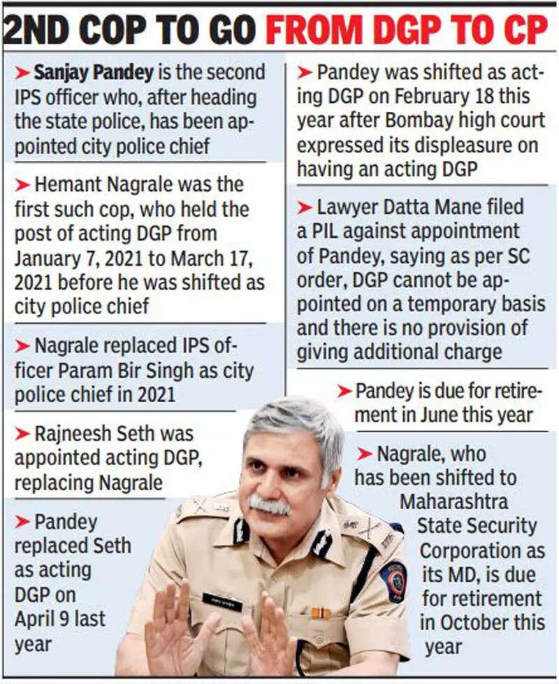 MUMBAI: After the HC said Sanjay Pandey was a blue-eyed boy of the government and should never have been considered for the post of DGP , Pandey, in a social media post, had said unfounded remarks attacking his integrity were made during the legal discourse, making it untenable for him to continue in the job.