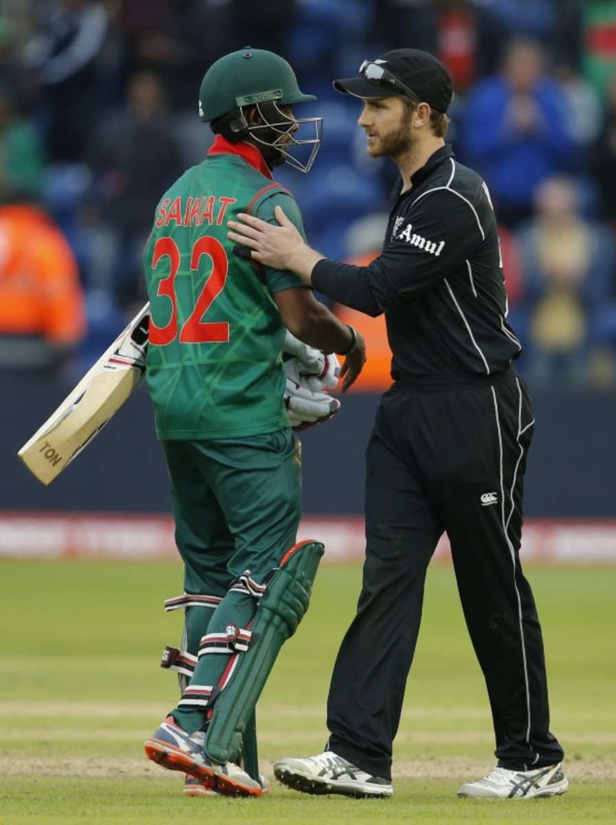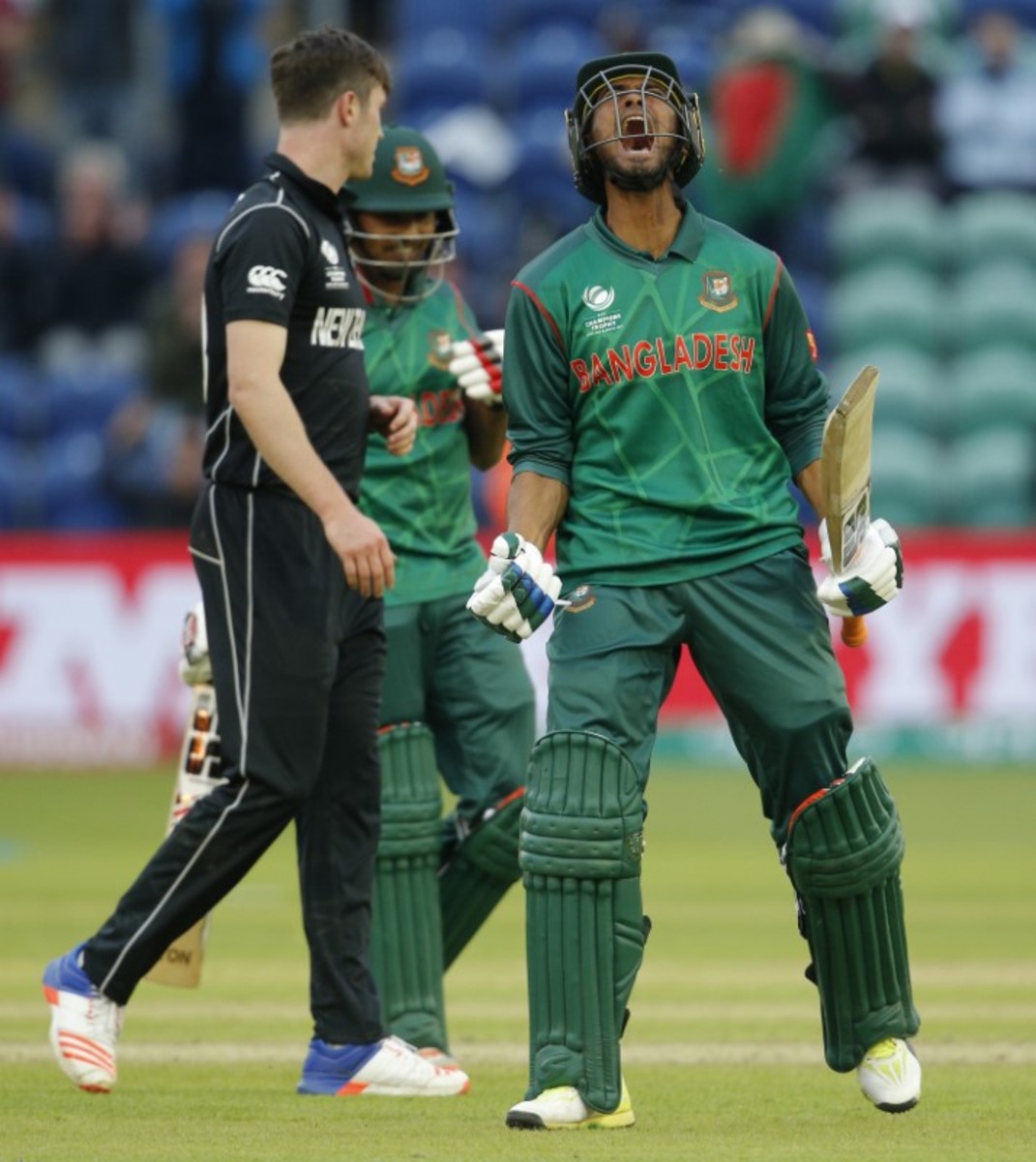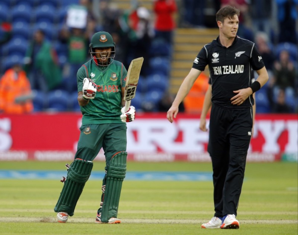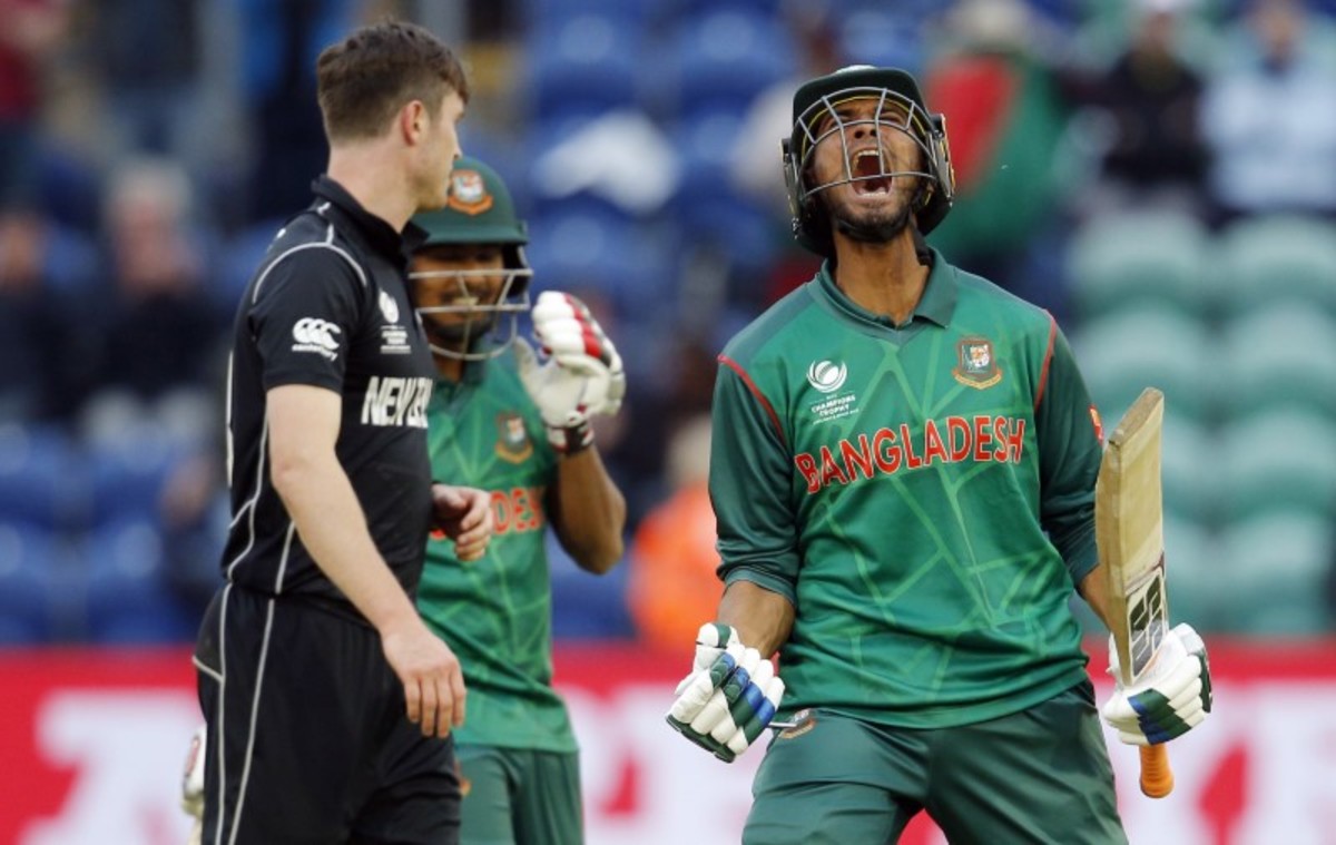 Britain Cricket - New Zealand v Bangladesh - 2017 ICC Champions Trophy Group A - Sophia Gardens - June 9, 2017 Bangladesh's Shakib Al Hasan as he is bowled by New Zealand's Trent Boult Action Images via Reuters / Andrew Couldridge Livepic Britain Cricket - New Zealand v Bangladesh - 2017 ICC Champions Trophy Group A - Sophia Gardens - June 9, 2017 Bangladesh's Mosaddek Hossain celebrates at the end Action Images via Reuters / Andrew Couldridge Livepic Britain Cricket - New Zealand v Bangladesh - 2017 ICC Champions Trophy Group A - Sophia Gardens - June 9, 2017 Bangladesh's Mohammad Mahmudullah celebrates at the end Action Images via Reuters / Andrew Couldridge Livepic Britain Cricket - New Zealand v Bangladesh - 2017 ICC Champions Trophy Group A - Sophia Gardens - June 9, 2017 New Zealand's Kane Williamson congratulates Bangladesh's Shakib Al Hasan at the end Action Images via Reuters / Andrew Couldridge LivepicBritain Cricket - New Zealand v Bangladesh - 2017 ICC Champions Trophy Group A - Sophia Gardens - June 9, 2017 Bangladesh's Mohammad Mahmudullah celebrates at the end with Mosaddek Hossain Action Images via Reuters / Andrew Couldridge Livepic Britain Cricket - New Zealand v Bangladesh - 2017 ICC Champions Trophy Group A - Sophia Gardens - June 9, 2017 Bangladesh's Mohammad Mahmudullah leads his team off as he celebrates at the end Action Images via Reuters / Andrew Couldridge Livepic