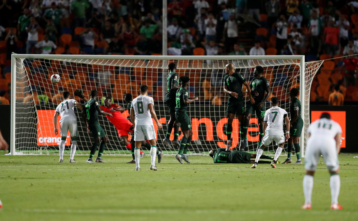 CAIRO (Reuters) - Algeria forward Riyad Mahrez's stunning free kick in stoppage time gave Algeria a 2-1 win over Nigeria in a tense Africa Cup of Nations semi-final played in a volatile atmosphere on Sunday.