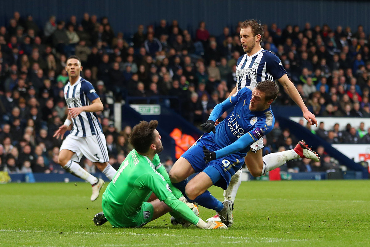 Soccer Football - Premier League - West Bromwich Albion vs Leicester City - The Hawthorns, West Bromwich, Britain - March 10, 2018 Leicester City's Jamie Vardy in action with West Bromwich Albion's Ben Foster REUTERS/Hannah McKay