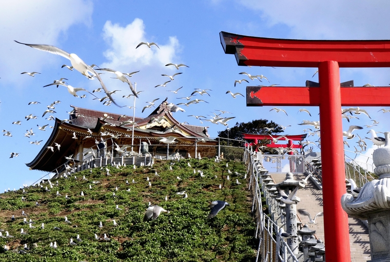 The construction was prolonged out of consideration for the gulls, but Kabushima Shrine's chief priest Toshio Nozawa said, "I want to make this shrine as beloved as the gulls."