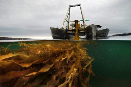 The seaweed farmers who work with Atlantic Seafarms grow their crops up and down the Maine coast and typically bring them in to shore in the spring months.