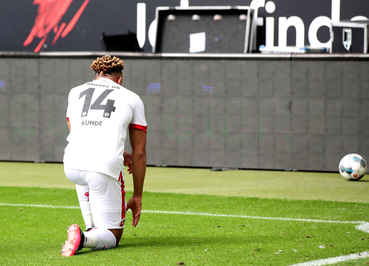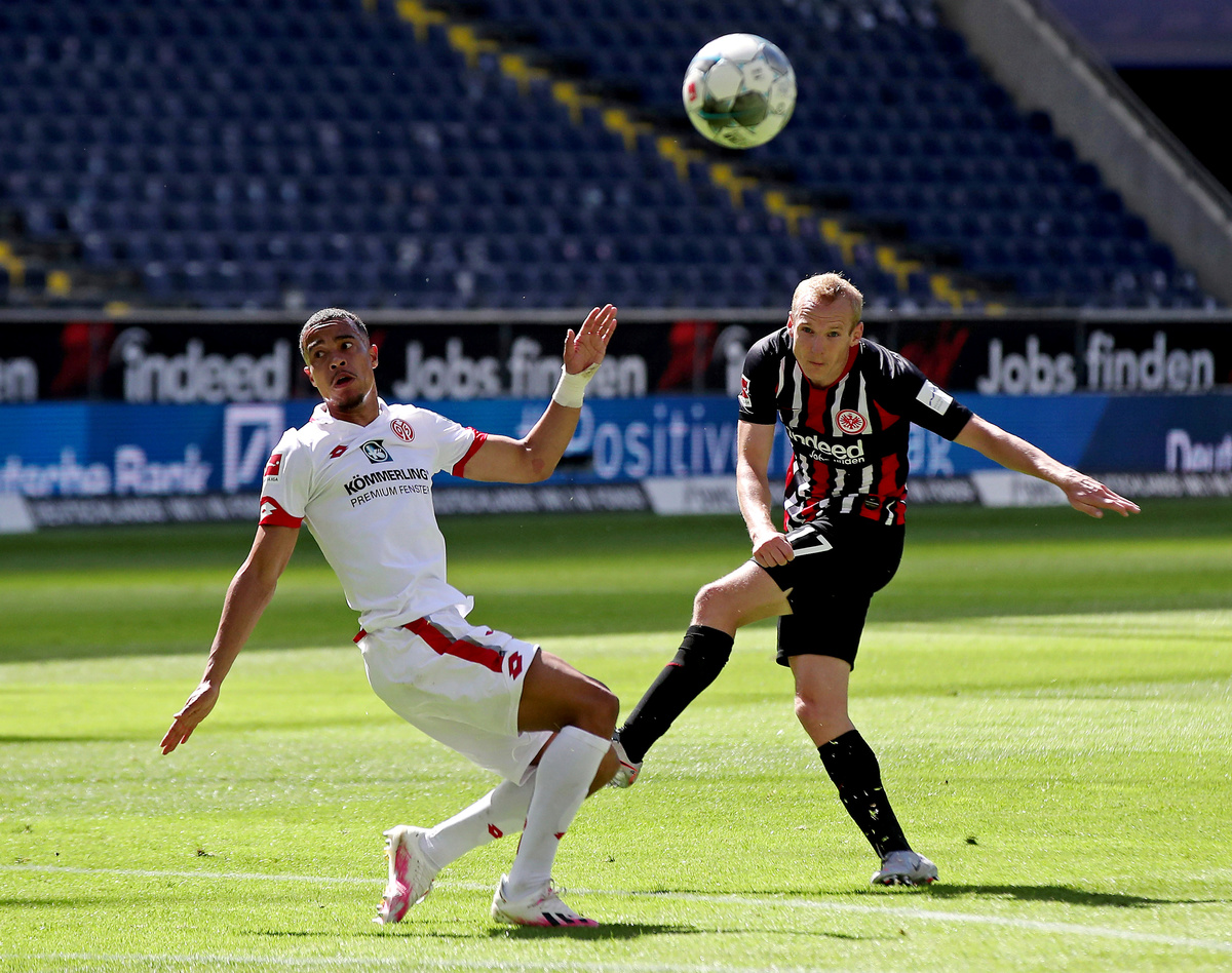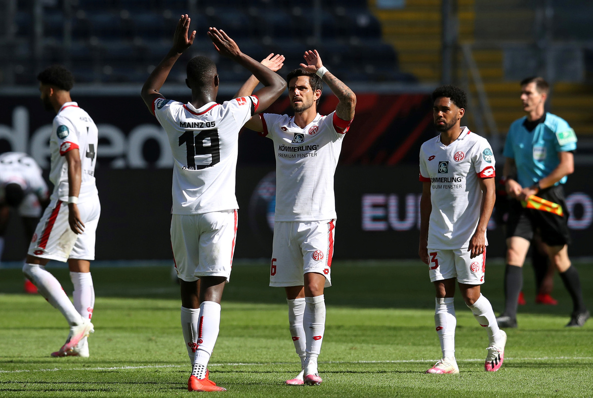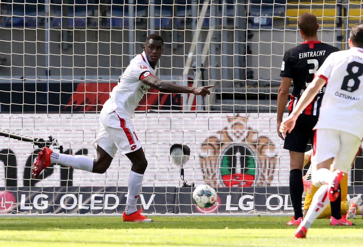 Soccer Football - Bundesliga - Eintracht Frankfurt v 1. FSV Mainz 05 - Commerzbank-Arena, Frankfurt, Germany - June 6, 2020 Mainz's Moussa Niakhate scores their first goal, as play resumes behind closed doors following the outbreak of the coronavirus disease (COVID-19) Alexander Hassenstein/Pool via REUTERS Soccer Football - Bundesliga - Eintracht Frankfurt v 1. FSV Mainz 05 - Commerzbank-Arena, Frankfurt, Germany - June 6, 2020 Mainz's Leandro Barreiro in action with Eintracht Frankfurt's Filip Kostic, as play resumes behind closed doors following the outbreak of the coronavirus disease (COVID-19) Alexander Hassenstein/Pool via REUTERS Soccer Football - Bundesliga - Eintracht Frankfurt v 1. FSV Mainz 05 - Commerzbank-Arena, Frankfurt, Germany - June 6, 2020 Mainz's Phillipp Mwene in action with Eintracht Frankfurt's Filip Kostic, as play resumes behind closed doors following the outbreak of the coronavirus disease (COVID-19) Alexander Hassenstein/Pool via REUTERS Soccer Football - Bundesliga - Eintracht Frankfurt v 1. FSV Mainz 05 - Commerzbank-Arena, Frankfurt, Germany - June 6, 2020 Mainz's Moussa Niakhate celebrates scoring their first goal, as play resumes behind closed doors following the outbreak of the coronavirus disease (COVID-19) Alexander Hassenstein/Pool via REUTERS Soccer Football - Bundesliga - Eintracht Frankfurt v 1. FSV Mainz 05 - Commerzbank-Arena, Frankfurt, Germany - June 6, 2020 Mainz's Pierre Kunde Malong celebrates scoring their second goal, as play resumes behind closed doors following the outbreak of the coronavirus disease (COVID-19) Alexander Hassenstein/Pool via REUTERS