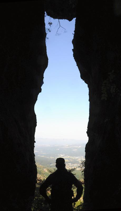 We arrived at our destination, "Manekineko no Kudo" (hollow of the beckoning cat). Rainwater seeping between the rocks freezes and expands in winter and then thaws in spring. Through repetition of the processes, the rocks collapsed little by little and the hollow became larger. I realized that, since the eruption occurred about 90,000 years ago, this place had changed little by little over a very long time.