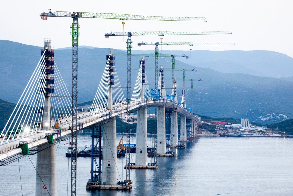 The bridge and its connecting roads are expected to be completed by June of next year. Until then, road travelers wanting to visit some of Croatia’s most attractive tourist destinations, such as the Old Town section of Dubrovnik, will still have to pass through two border checkpoints between Bosnia and Croatia at the Bosnian seaside port of Neum.