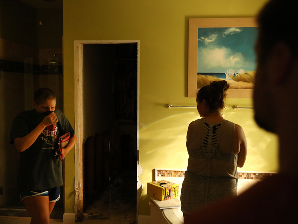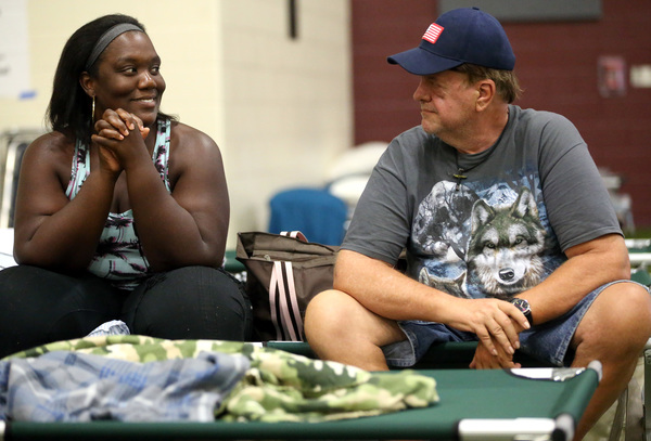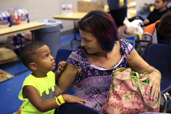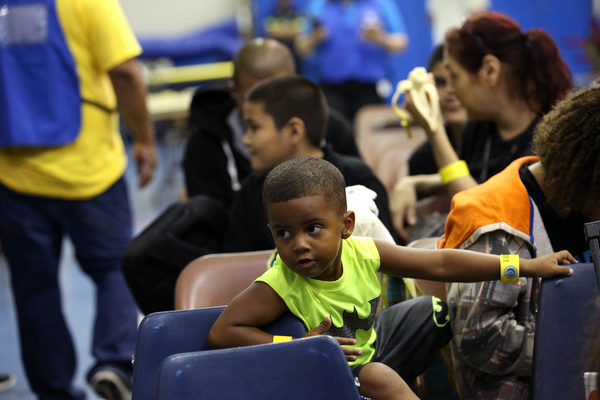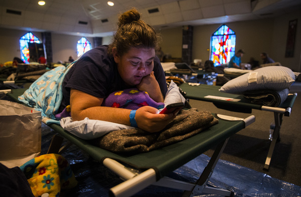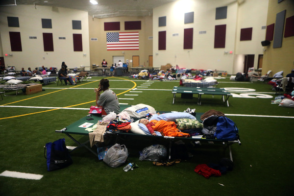 Families were still arriving, some with sleeping pads and rain boots, others with their belongings in garbage bags. Some feared for relatives left behind, and others worried they might soon face shortages of food and other supplies at the shelter. People scrambled to find other places to stay as the rain continued to fall.