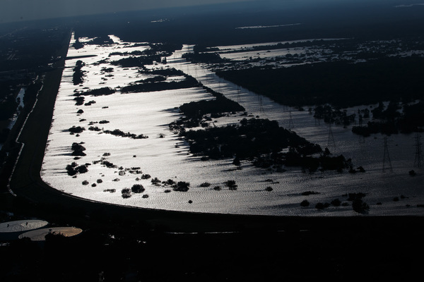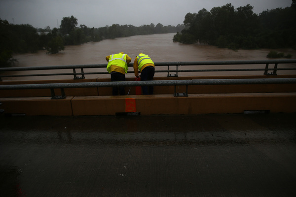 In Brazoria County, south of Houston, the Brazos River was beginning to overflow its banks. On Tuesday morning, a levee breached in the Columbia Lakes neighborhood.