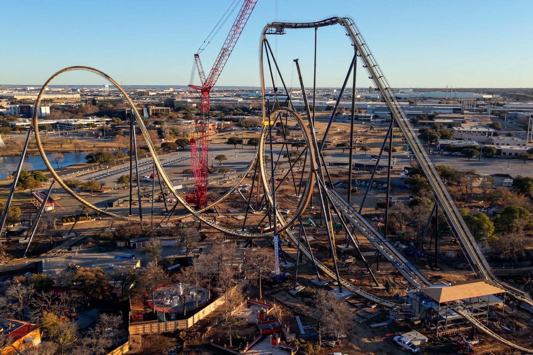 Last week, the Six Flags Over Texas ride’s 18-story, 179-foot vertical loop — the tallest in the world — was completed.