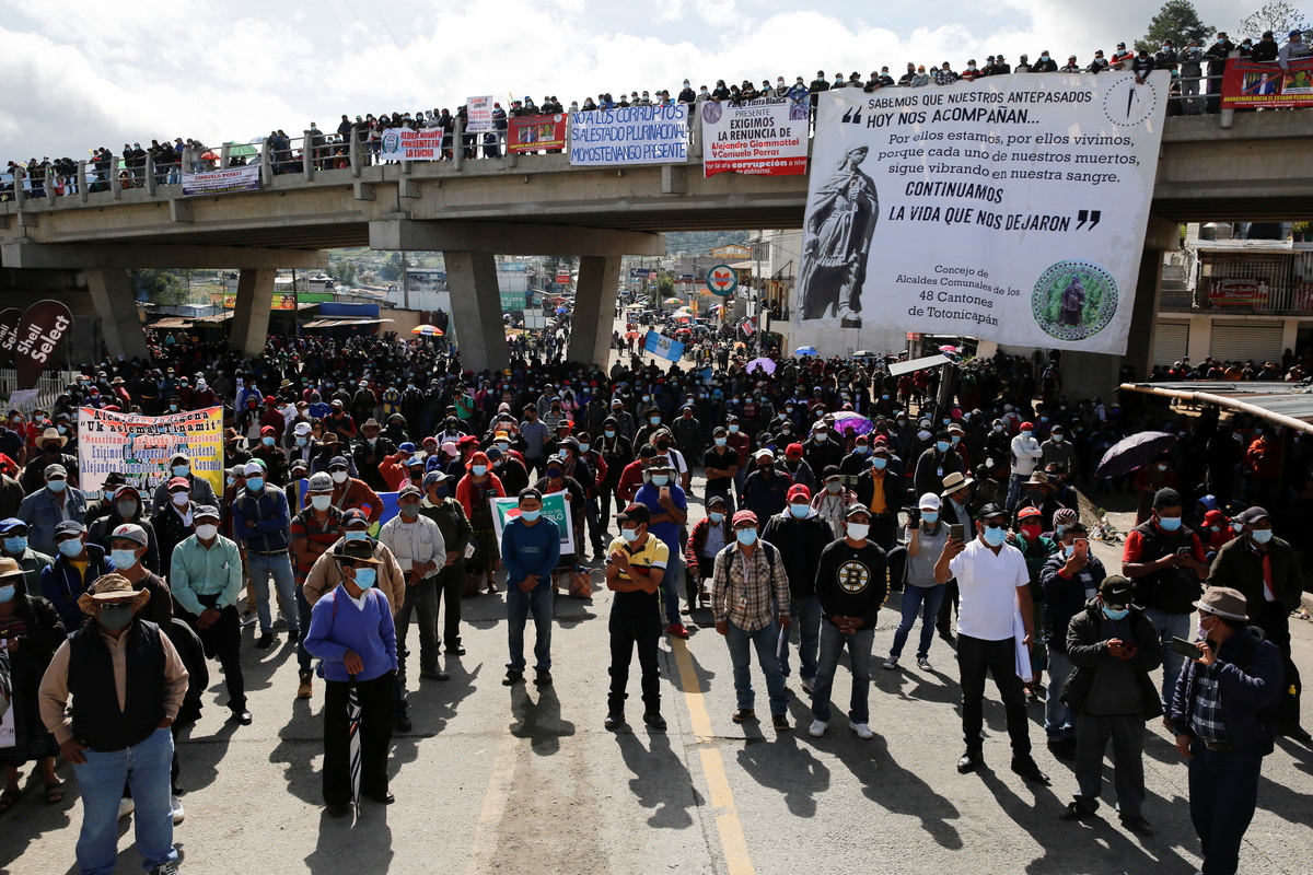 Thousands of Guatemalans took to the streets in protest on Thursday, lighting fires and blocking roads across the Central American country, to demand the resignation of President Alejandro Giammattei after the firing of a well-known anti-corruption prosecutor.