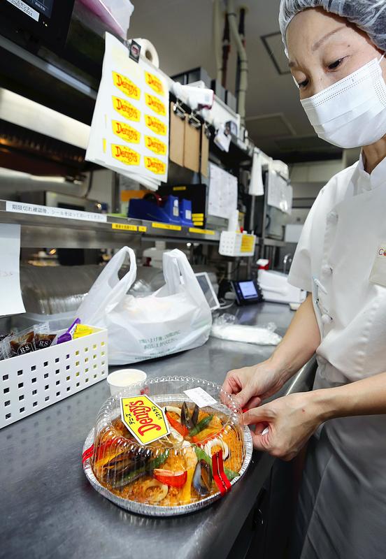 The staff at a Denny's family restaurant was in the kitchen steadily pumping out paella recently, although there was not one customer to be seen waiting for the food in the restaurant in Shinagawa Ward, Tokyo.