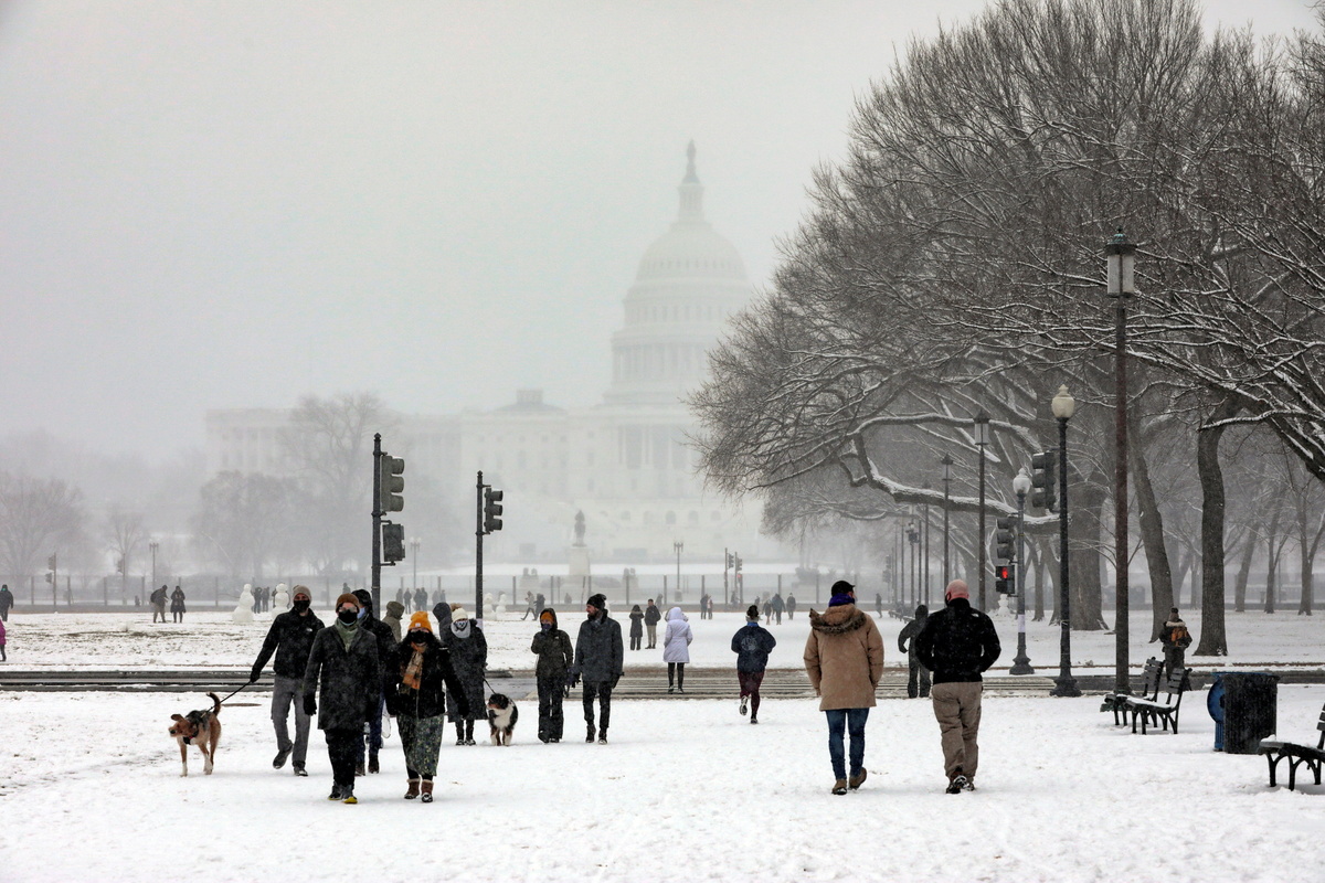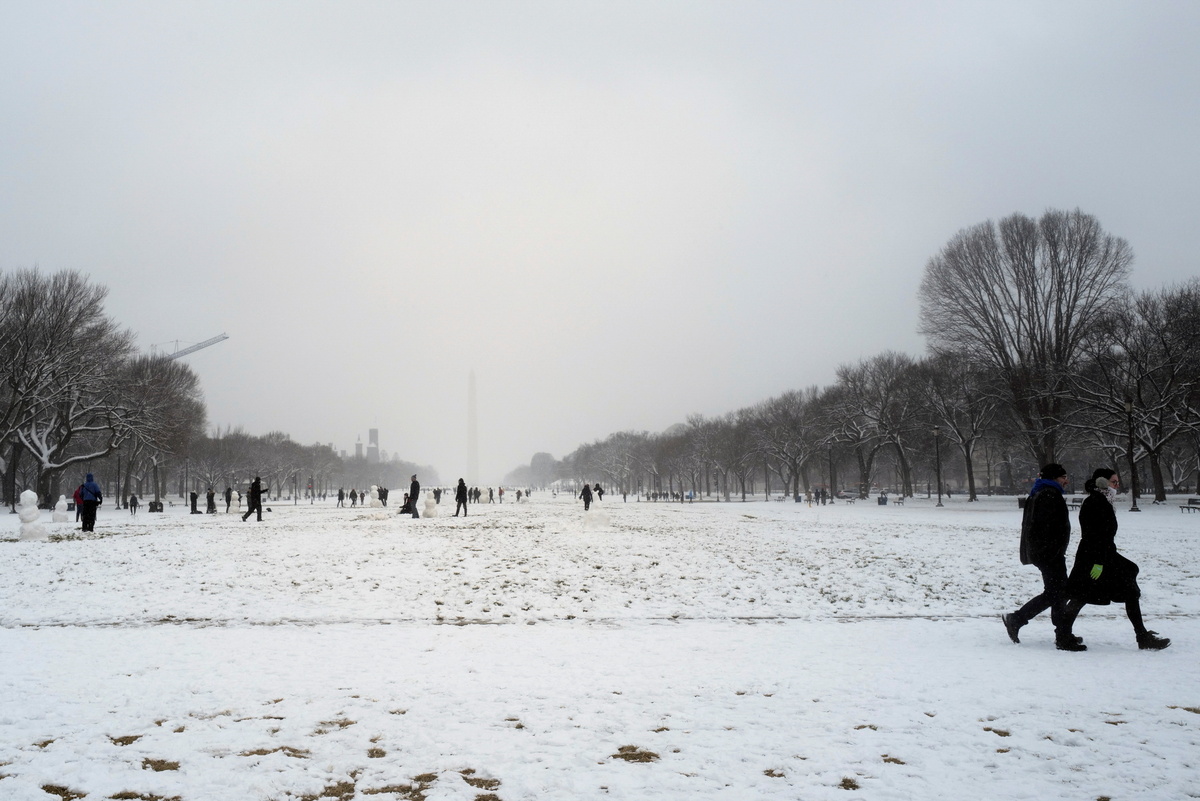 Snow hit the Washington D.C. metropolitan area, with over 2 inches reported in several areas.