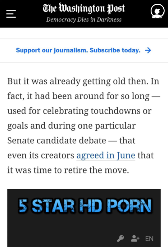 The Washington Post was one of the news sites affected by the X-rated tech glitch