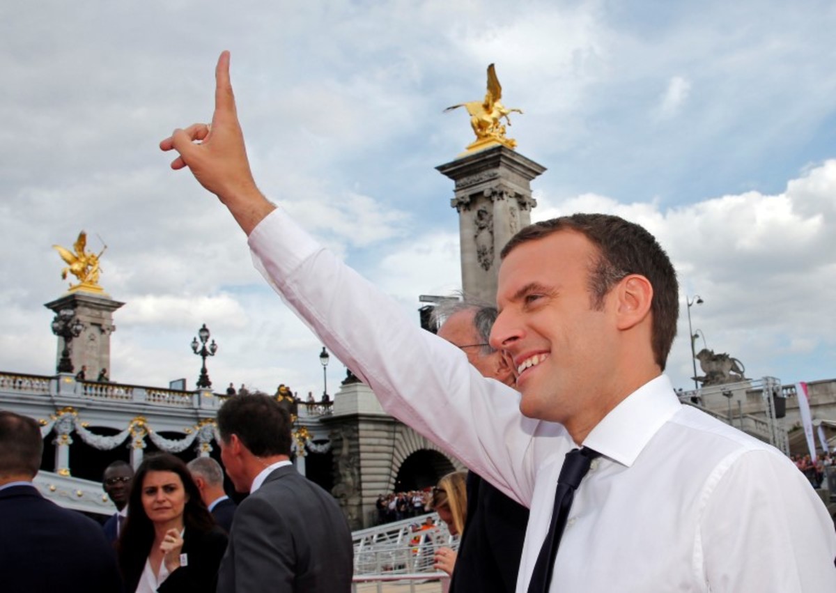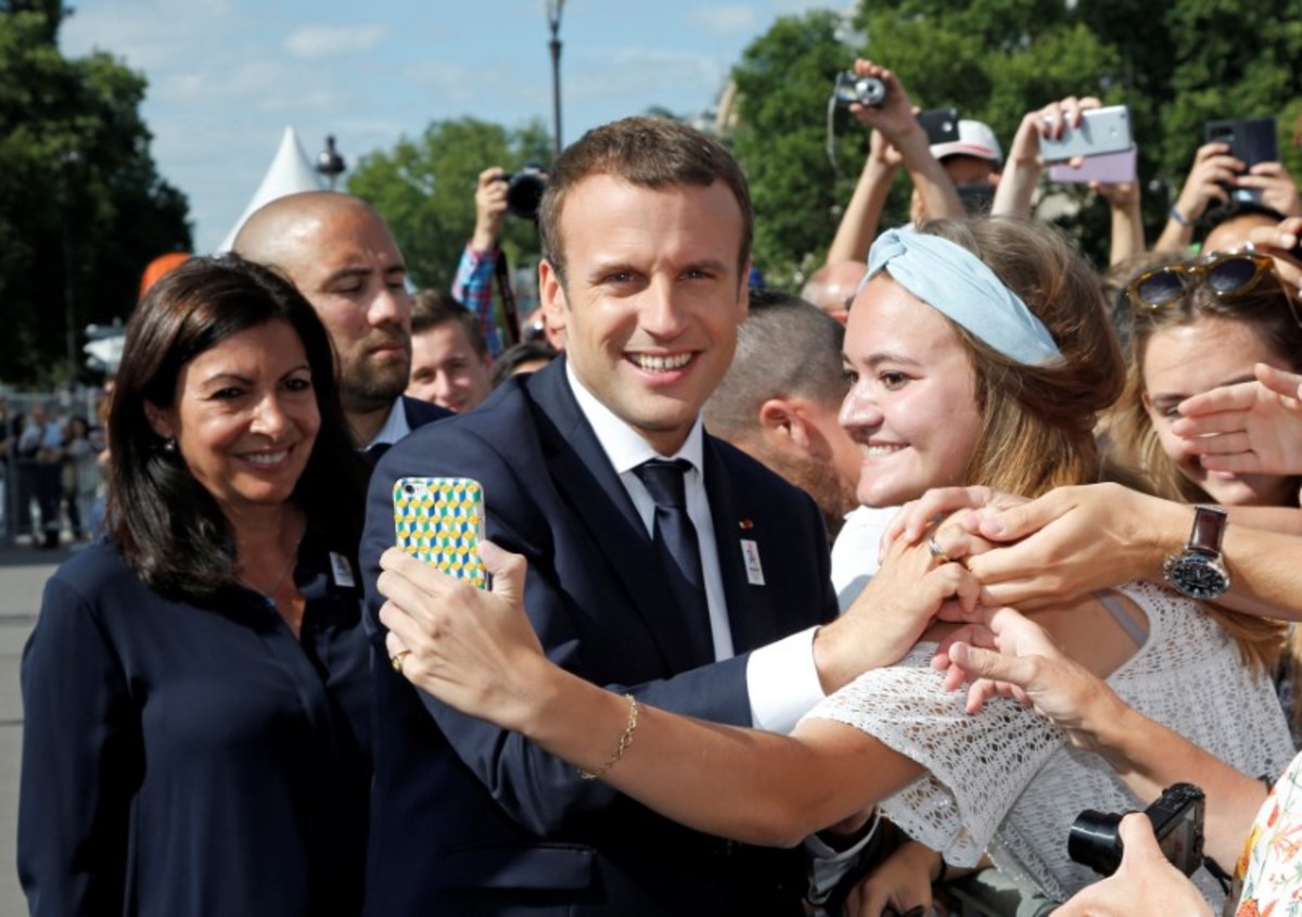 Macron also went to a floating boxing ring on the Seine river and exchanged a few friendly punches with a young boxer.