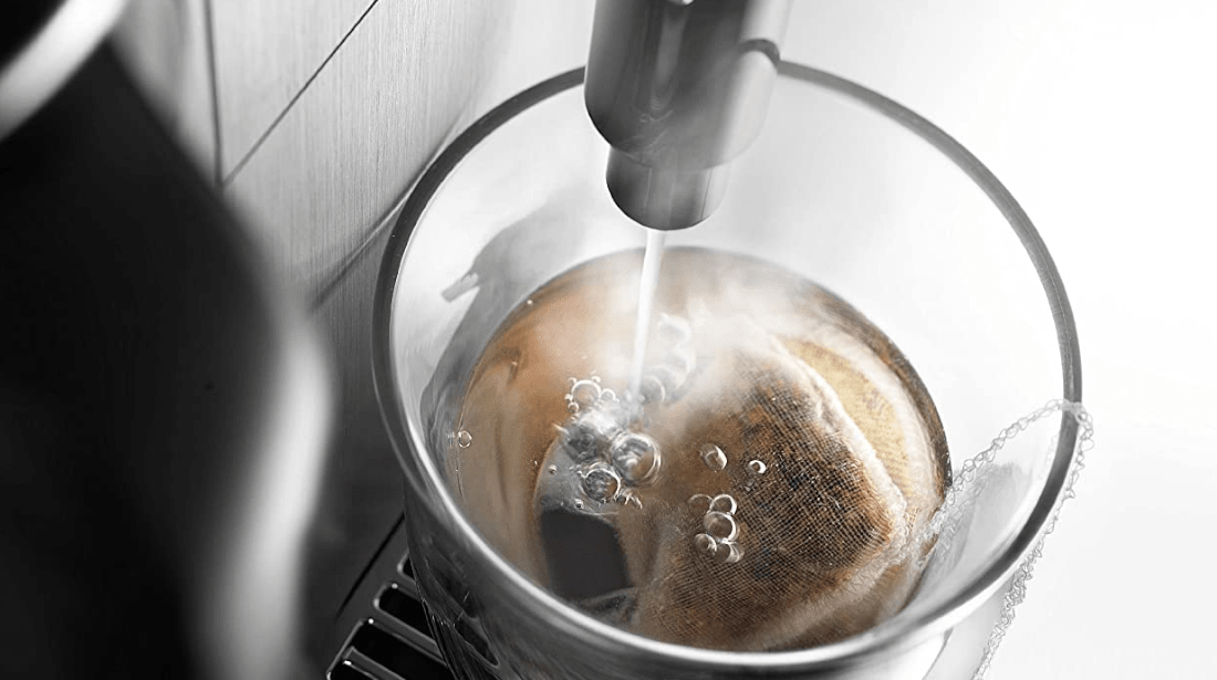 This single serve coffee and espresso machine features a 25 second heat up time and energy saving automatic shut off. You can brew four different cup sizes, and pour over ice for an iced coffee or latte. The Aeroccino milk frother is included in this price, and can provide smooth hot or cold milk froth in just seconds. Each machine includes a complimentary starter set with capsule assortments. With over 10,600 ratings, this is by far one the most popular Nespresso bundles.