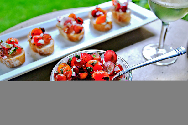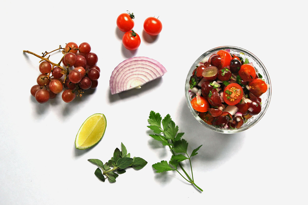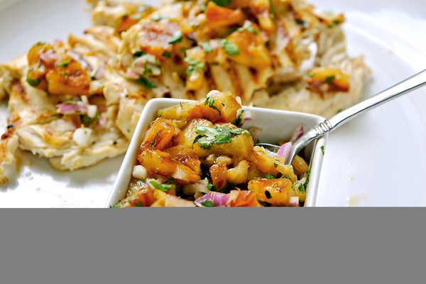 For example: Grapes (yes, grapes!) can bring a crostini slathered with goat cheese to life with the addition of a little onion, cherry tomato, lime juice and chopped herbs. Briny green olives mixed with toasted slivered almonds, lemon juice, orange zest and chipotle pepper are an unexpected, but oh-so-delicious, topper for watery, light-flavored vegetables such as eggplant and zucchini. Grilled pineapple and sweet, juicy peaches, when mixed with chili, lime, red onion and spices, brighten not just fish and pork but also give chicken a lively kick.