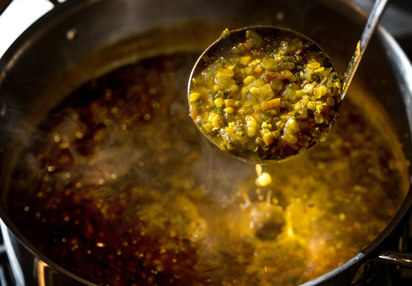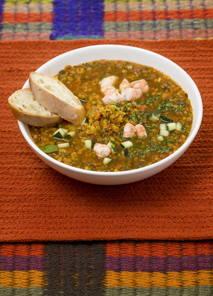Meatless Monday: "Brace yourself, there's no meat in this soup. That comes from a great tradition, a culture where meat is not eaten a great deal and where it's generally a flavoring. And we have lentils, and they provide all the protein that's needed. They also absorb all kinds of flavors. Think of it this way: However you would season a steak, you can put those seasonings into cooking lentils. If you wanted to add meat to this, ground lamb would have a very traditional feel. Chicken would work. Pork would be wonderful, although it would go against tradition from that part of the world."