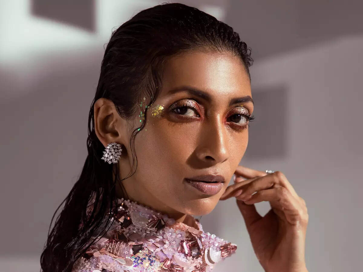 Pankaj & Nidhi\'s collection titled Afterglow, lived up to its name with models shimmering in glittery eyeshadow and sequins glued strategically on both sides of the eyes.