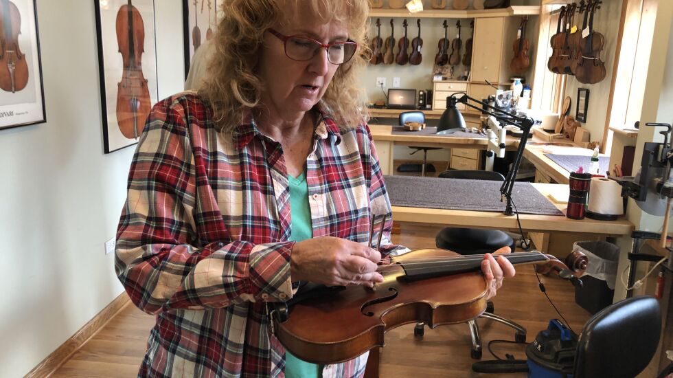 “When I’m not up to my elbows in wood shavings, I’m up to my elbows in lily pads,” she said. “Pretty much all I do is make violins, and I fish and make coffee.”