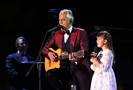Bocelli and his daughter Virginia sang Leonard Cohen’s “Hallelujah”, and the multi-talented family showed off their musical prowess with Bocelli swapping instruments throughout the performance. Songs included favourites from Puccini, hits from the artist’s most recent album, Believe, as well as songs from The Greatest Showman and Carousel, and his usual encore, “Time to Say Goodbye”.