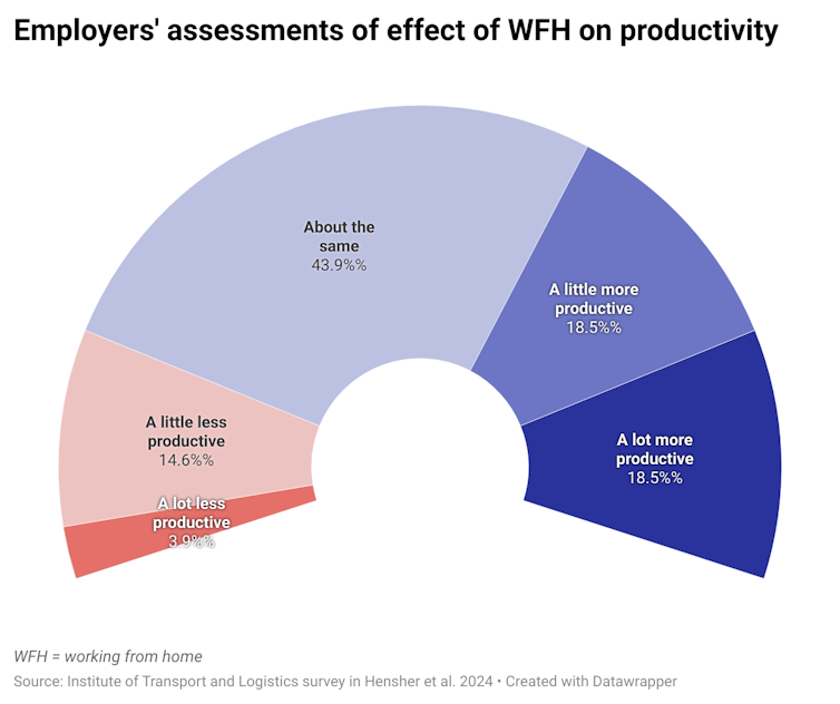 Interestingly, when employers were asked the same question about whether their workers who took up working from home had become more or less productive, the answers were about the same.