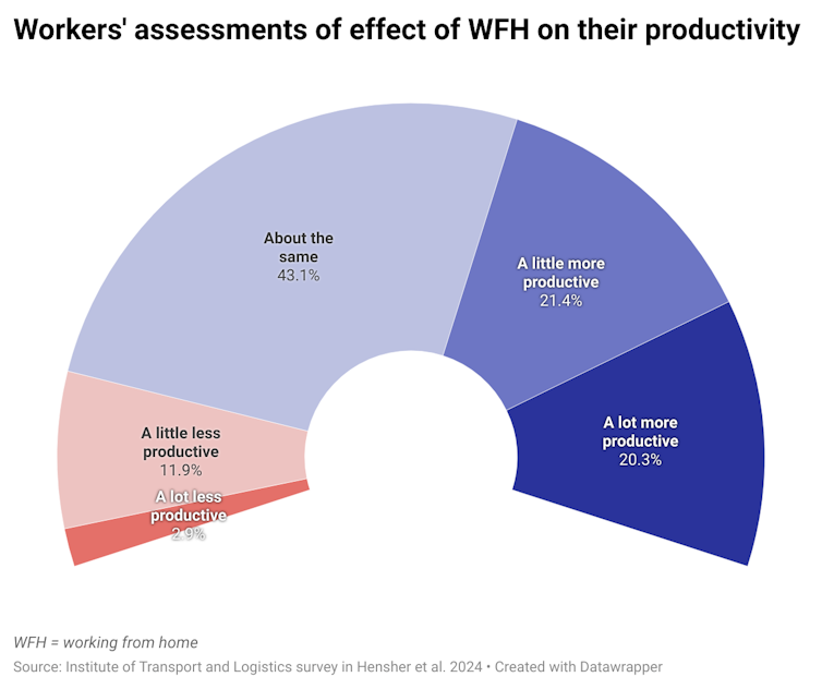 With colleagues from the Institute of Transport and Logistics Studies at The University of Sydney Business School, I have been monitoring the changing incidence of working from home and its relationship to performance since the start of the pandemic.