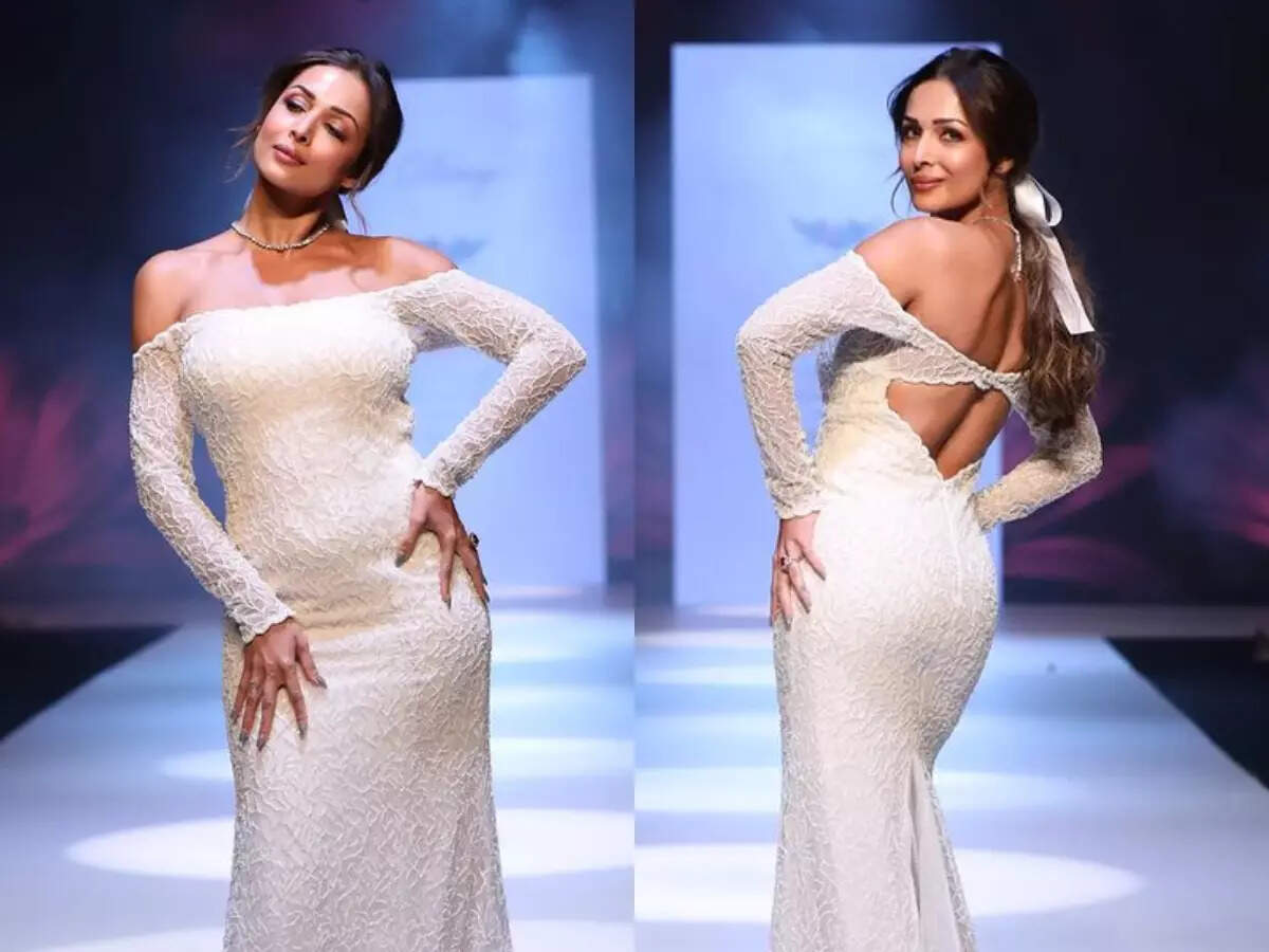Malaika Arora made sure all eyes were on her as she sauntered down the ramp in a white off-shouldered gown from Daisy Bridal. The collection was titled Fleur de Jardin and it took inspiration from the golden age of cinema and fashion. It was an effort to mix vintage and modernity together.