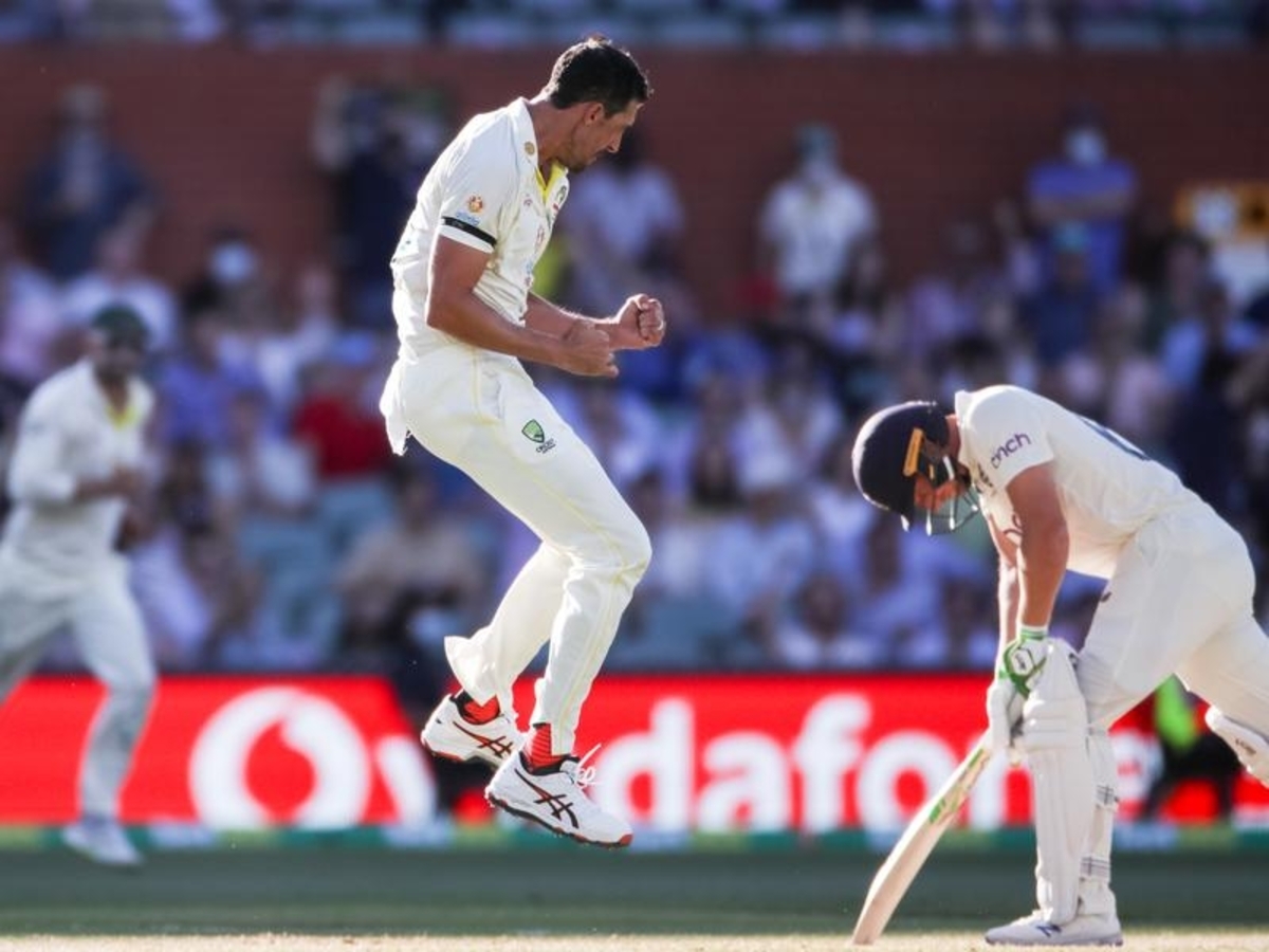 Mitchell Starc (3-36) again maintained his imposing run with the pink ball, taking his tally of wickets to 49 in nine games by removing both Dawid Malan and Jos Buttler.