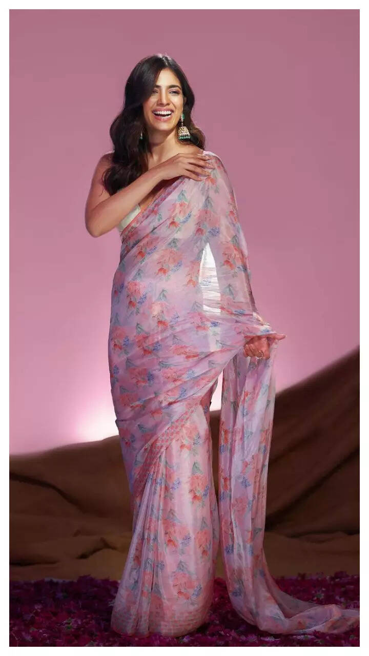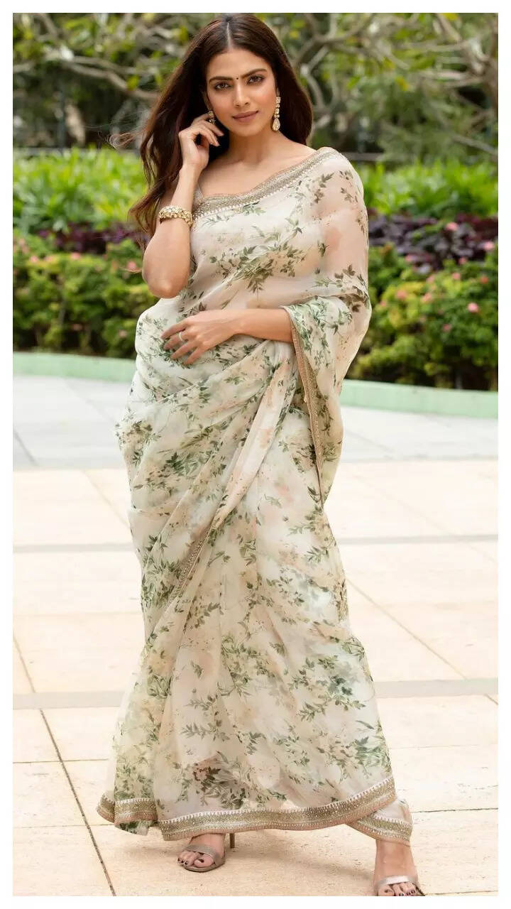 Malavika looks gorgeous in the floral-printed saree.