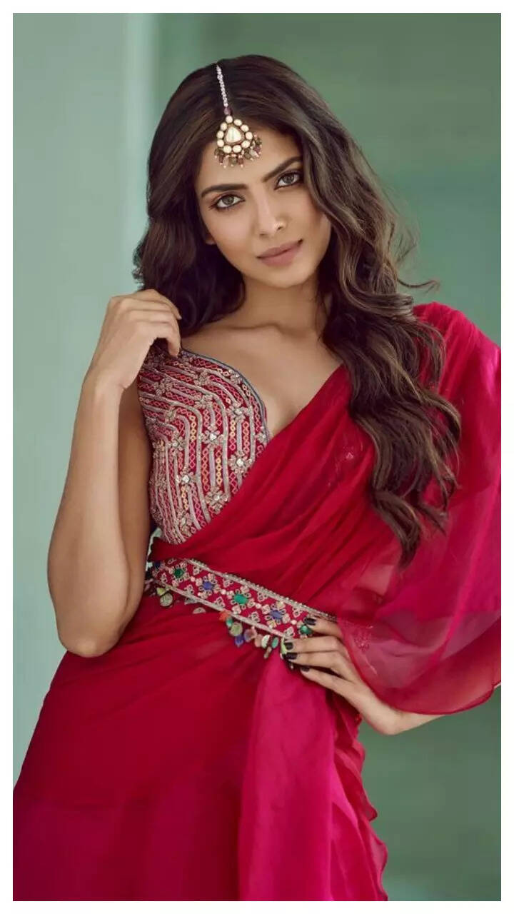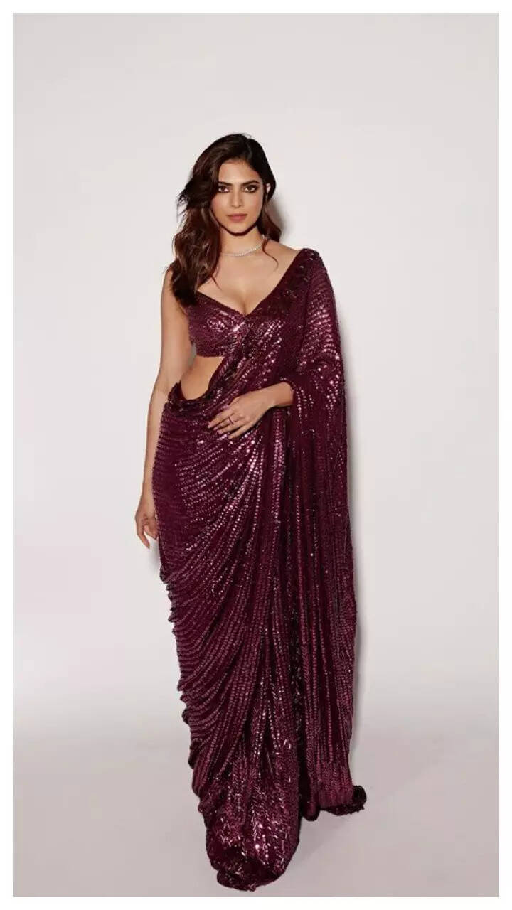 Malavika looks jaw dropping in the wine-coloured shimmery saree.