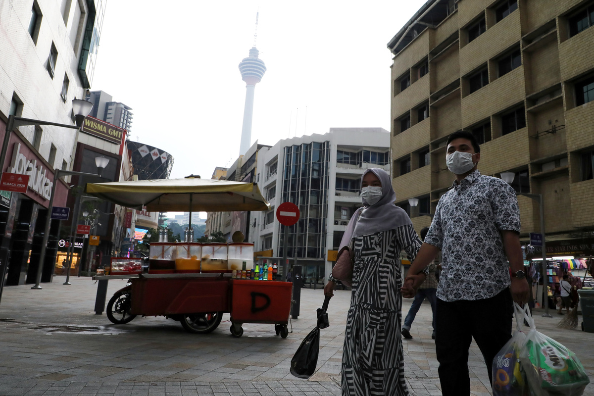 A couple wearing protective face masks cross a street, following the outbreak of the coronavirus in Kuala Lumpur, Malaysia, March 6, 2020. REUTERS/Lim Huey Teng