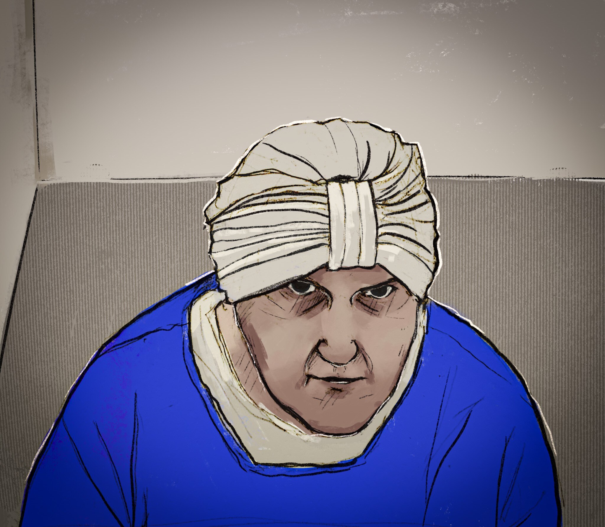 She appeared by videolink from the Dame Phyllis Frost Centre, which is Victoria's maximum-security women's prison, wearing a blue jumper, a white shirt and a white head covering.