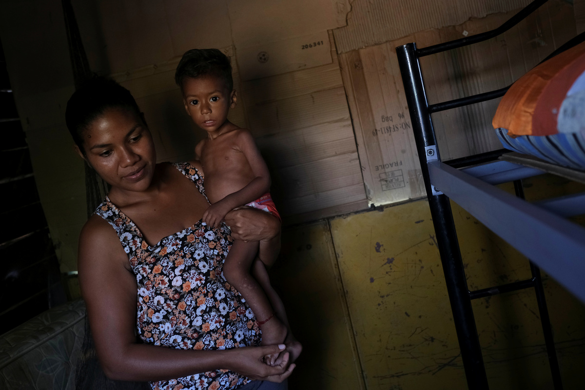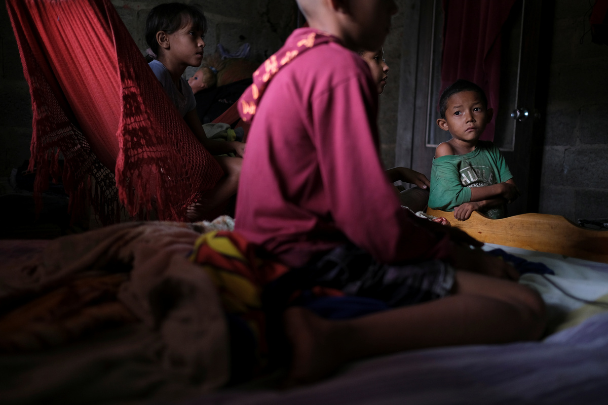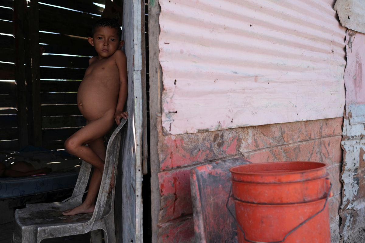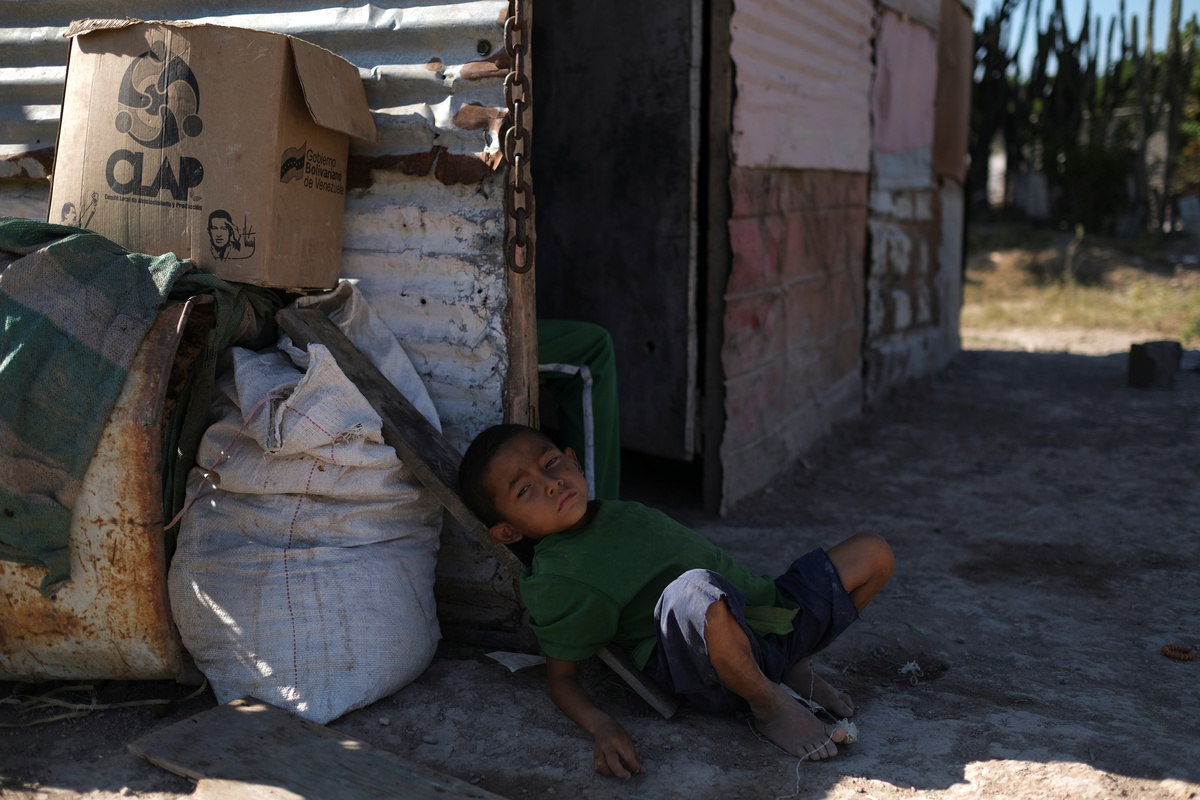 Jose Maria, 6, who is underweight for his age and has been diagnosed with malnutrition according to his mother Rosa Rojas, watches a neighbour play a video game at his house in Barquisimeto, Venezuela, August 15, 2019. "This week I didn't have anything to give them, we spent a week without food, I couldn't find how to give them. A lady came and sent me a half kilo of rice. My dad gave me (food) last night and I gave them sweet rice to feed them, because it is hard for me, sometimes I don't have anything, sometimes I do," said Rojas. REUTERS/Carlos Garcia Rawlins SEARCH "VENEZUELA MALNUTRITION" FOR THIS STORY. SEARCH "WIDER IMAGE" FOR ALL STORIES.Sonia, seven moths old, who has diarrhoea and is underweight according to her mother, rests on a bed after bathing at her house in Barquisimeto, Venezuela August 16, 2019. "She weighed 6 kilos and now weighs 5, she lost a kilo." "Due to diarrhoea, she lost a kilo, what worries me is that she could also end up in a hospital," said Gregoria Hernandez, Sonia's mother, who has previously had two other children hospitalised for malnutrition. REUTERS/Carlos Garcia Rawlins SEARCH "VENEZUELA MALNUTRITION" FOR THIS STORY. SEARCH "WIDER IMAGE" FOR ALL STORIES.Francys Rivero holds her two-month-old son Kenai, who has been diagnosed with malnutrition, while they wait to be seen at a special event for children with nutritional problems, organized by Catholic relief agency Caritas, at a church in Barquisimeto, Venezuela, August 10, 2019. REUTERS/Carlos Garcia Rawlins SEARCH "VENEZUELA MALNUTRITION" FOR THIS STORY. SEARCH "WIDER IMAGE" FOR ALL STORIES.Gregoria Hernandez feeds pasta and rice for lunch to her daughter Sonia, who was hospitalised a couple of months ago for malnutrition, at their house in Barquisimeto, Venezuela, November 28, 2019. When Sonia's vital signs began slipping, Hernandez boarded an ambulance where medics struggled to find a vein in Sonia's emaciated body to intravenously hydrate her. "I thought she was going to die in that ambulance," said Hernandez. REUTERS/Carlos Garcia Rawlins SEARCH "VENEZUELA MALNUTRITION" FOR THIS STORY. SEARCH "WIDER IMAGE" FOR ALL STORIES.Francys Rivero carries her son Kenai who is two months old and has been diagnosed with malnutrition, while they wait to be seen at a special event for children with nutritional problems, organised by Catholic relief agency Caritas, at a church in Barquisimeto, Venezuela, August 10, 2019. REUTERS/Carlos Garcia Rawlins SEARCH "VENEZUELA MALNUTRITION" FOR THIS STORY. SEARCH "WIDER IMAGE" FOR ALL STORIES.Adelaida Marquez, 25, carries her 15-month-old son Javier, who has been diagnosed with malnutrition, as her husband Javier Liendo, 29, tends to a fire cooking a meal at his sister's house, where they are staying to receive medical treatment in Barquisimeto, Venezuela, August 16, 2019. "Before, they had everything. They ate three times a day, they ate chicken, meat, eggs, they drank juices - things we can't do now," said Marquez, explaining the food she can provide for her children. "With the current situation, we can barely eat." REUTERS/Carlos Garcia Rawlins SEARCH "VENEZUELA MALNUTRITION" FOR THIS STORY. SEARCH "WIDER IMAGE" FOR ALL STORIES. Zuleidi Hernandez carries her seven-month-old niece Sonia, who has diarrhoea and is underweight, according to her mother, outside her house in Barquisimeto, Venezuela August 16, 2019. "They have not gone to bed without eating, but when I have food for the night I do not have anything to give them in the day," said Gregoria Hernandez, Sonia's mother, while explaining the availability of food at home for her children. REUTERS/Carlos Garcia Rawlins SEARCH "VENEZUELA MALNUTRITION" FOR THIS STORY. SEARCH "WIDER IMAGE" FOR ALL STORIES.Francys Rivero holds her two-month-old son Kenai, who has been diagnosed with malnutrition, while he receives a blood test at a clinic in Barquisimeto, Venezuela, August 14, 2019. "Right now you eat what you find, so we don't always have everything in the house to be able to have a balanced meal," Said Rivero. REUTERS/Carlos Garcia Rawlins SEARCH "VENEZUELA MALNUTRITION" FOR THIS STORY. SEARCH "WIDER IMAGE" FOR ALL STORIES.Community members prepare soup for free distribution for people attending a special event for children with nutritional problems, organised by Catholic relief agency Caritas, at a church in Barquisimeto, Venezuela August 10, 2019. REUTERS/Carlos Garcia Rawlins SEARCH "VENEZUELA MALNUTRITION" FOR THIS STORY. SEARCH "WIDER IMAGE" FOR ALL STORIES.Pastor, 3, and Josue, 4, both of whom have been hospitalised in the past for malnutrition, according to their mother, bathe next to their brother Duglas, 5, outside their house in Barquisimeto, Venezuela November 28, 2019. "They have not gone to bed without eating, but when I have food for the night I do not have anything to give them in the day," said their mother, Gregoria Hernandez, while explaining the availability of food at home for her children. REUTERS/Carlos Garcia Rawlins SEARCH "VENEZUELA MALNUTRITION" FOR THIS STORY. SEARCH "WIDER IMAGE" FOR ALL STORIES.Jose Maria, 6, who is underweight for his age, and has been diagnosed with malnutrition according to his mother Rosa Rojas, rests next to a CLAP box, outside of his house in Barquisimeto, Venezuela, August 8, 2019. CLAP is a Venezuelan government program which provides basic food at subsidized prices. "Very ugly, it's an ugly life," says Rojas, as she describes how complicated it is to find wood for cooking, and how much they are affected by power cuts and the lack of water. REUTERS/Carlos Garcia Rawlins SEARCH "VENEZUELA MALNUTRITION" FOR THIS STORY. SEARCH "WIDER IMAGE" FOR ALL STORIES.Francys Rivero holds her five-month-old son Kenai, who recovered from malnutrition, while talking to her sons Collins, 11, and Enmanuel, 2, outside their home in Barquisimeto, Venezuela, November 27, 2019. REUTERS/Carlos Garcia Rawlins SEARCH "VENEZUELA MALNUTRITION" FOR THIS STORY. SEARCH "WIDER IMAGE" FOR ALL STORI