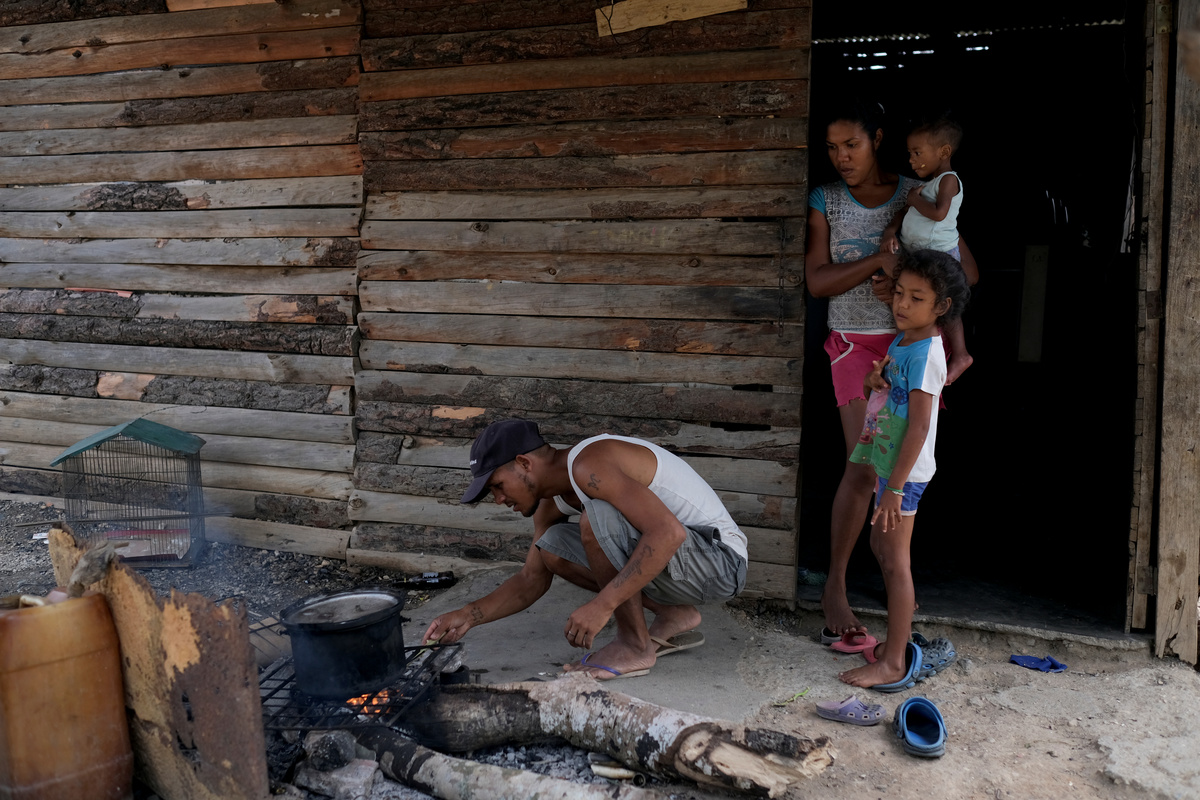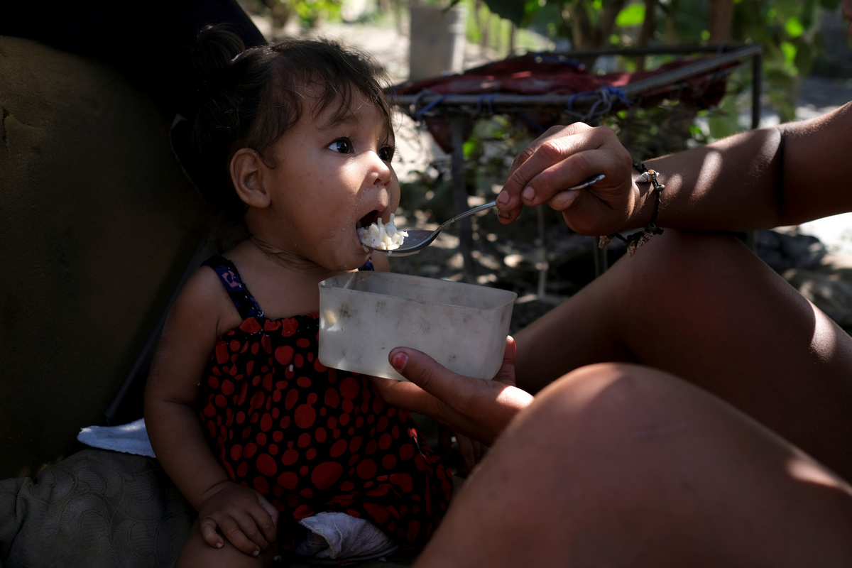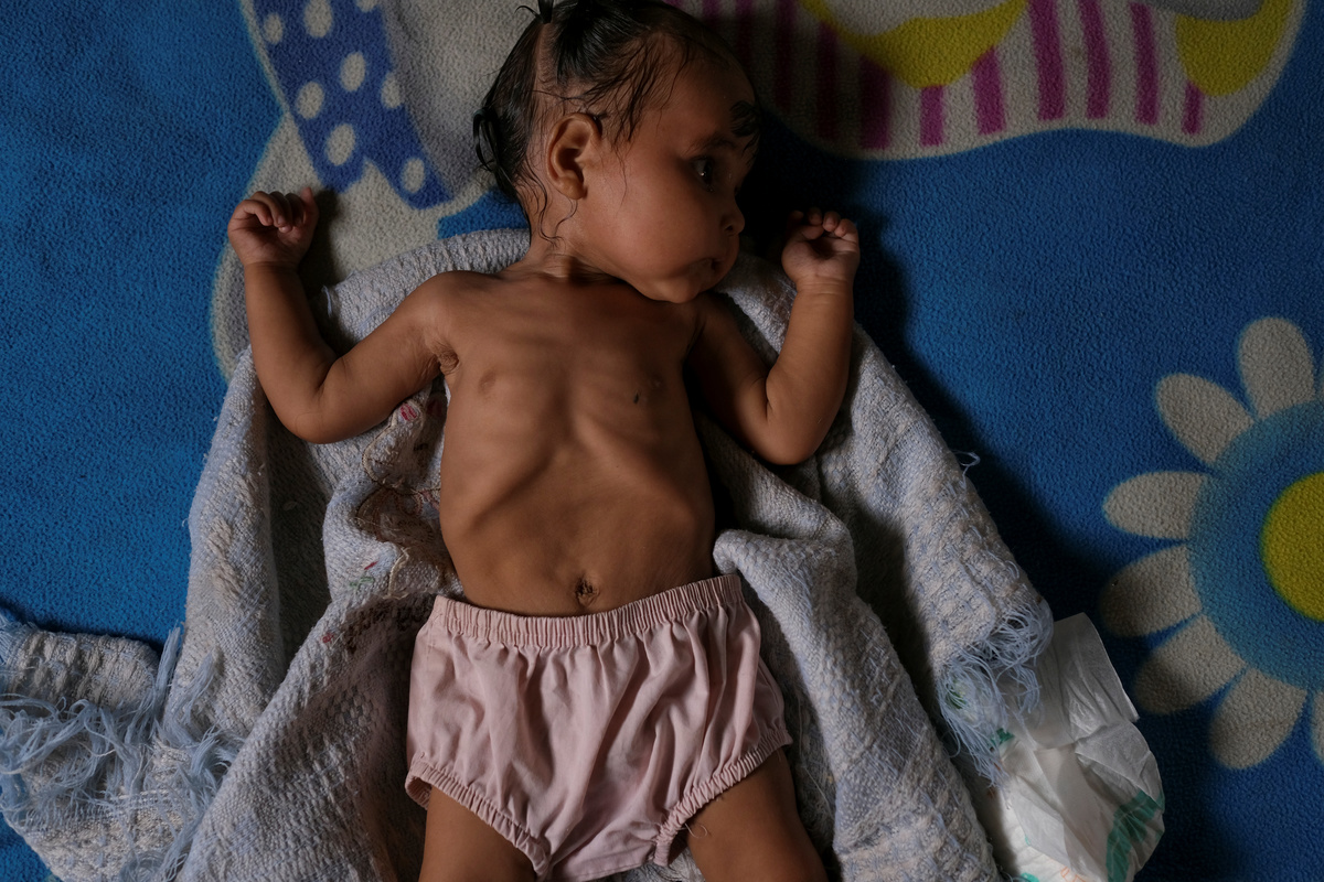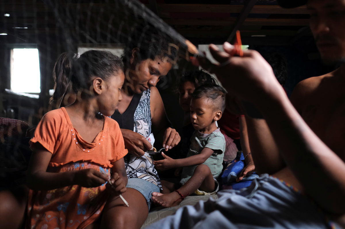 Jose Maria, 6, who is underweight for his age and has been diagnosed with malnutrition according to his mother Rosa Rojas, watches a neighbour play a video game at his house in Barquisimeto, Venezuela, August 15, 2019. "This week I didn't have anything to give them, we spent a week without food, I couldn't find how to give them. A lady came and sent me a half kilo of rice. My dad gave me (food) last night and I gave them sweet rice to feed them, because it is hard for me, sometimes I don't have anything, sometimes I do," said Rojas. REUTERS/Carlos Garcia Rawlins SEARCH "VENEZUELA MALNUTRITION" FOR THIS STORY. SEARCH "WIDER IMAGE" FOR ALL STORIES.Sonia, seven moths old, who has diarrhoea and is underweight according to her mother, rests on a bed after bathing at her house in Barquisimeto, Venezuela August 16, 2019. "She weighed 6 kilos and now weighs 5, she lost a kilo." "Due to diarrhoea, she lost a kilo, what worries me is that she could also end up in a hospital," said Gregoria Hernandez, Sonia's mother, who has previously had two other children hospitalised for malnutrition. REUTERS/Carlos Garcia Rawlins SEARCH "VENEZUELA MALNUTRITION" FOR THIS STORY. SEARCH "WIDER IMAGE" FOR ALL STORIES.Francys Rivero holds her two-month-old son Kenai, who has been diagnosed with malnutrition, while they wait to be seen at a special event for children with nutritional problems, organized by Catholic relief agency Caritas, at a church in Barquisimeto, Venezuela, August 10, 2019. REUTERS/Carlos Garcia Rawlins SEARCH "VENEZUELA MALNUTRITION" FOR THIS STORY. SEARCH "WIDER IMAGE" FOR ALL STORIES.Gregoria Hernandez feeds pasta and rice for lunch to her daughter Sonia, who was hospitalised a couple of months ago for malnutrition, at their house in Barquisimeto, Venezuela, November 28, 2019. When Sonia's vital signs began slipping, Hernandez boarded an ambulance where medics struggled to find a vein in Sonia's emaciated body to intravenously hydrate her. "I thought she was going to die in that ambulance," said Hernandez. REUTERS/Carlos Garcia Rawlins SEARCH "VENEZUELA MALNUTRITION" FOR THIS STORY. SEARCH "WIDER IMAGE" FOR ALL STORIES.Francys Rivero carries her son Kenai who is two months old and has been diagnosed with malnutrition, while they wait to be seen at a special event for children with nutritional problems, organised by Catholic relief agency Caritas, at a church in Barquisimeto, Venezuela, August 10, 2019. REUTERS/Carlos Garcia Rawlins SEARCH "VENEZUELA MALNUTRITION" FOR THIS STORY. SEARCH "WIDER IMAGE" FOR ALL STORIES.Adelaida Marquez, 25, carries her 15-month-old son Javier, who has been diagnosed with malnutrition, as her husband Javier Liendo, 29, tends to a fire cooking a meal at his sister's house, where they are staying to receive medical treatment in Barquisimeto, Venezuela, August 16, 2019. "Before, they had everything. They ate three times a day, they ate chicken, meat, eggs, they drank juices - things we can't do now," said Marquez, explaining the food she can provide for her children. "With the current situation, we can barely eat." REUTERS/Carlos Garcia Rawlins SEARCH "VENEZUELA MALNUTRITION" FOR THIS STORY. SEARCH "WIDER IMAGE" FOR ALL STORIES. Zuleidi Hernandez carries her seven-month-old niece Sonia, who has diarrhoea and is underweight, according to her mother, outside her house in Barquisimeto, Venezuela August 16, 2019. "They have not gone to bed without eating, but when I have food for the night I do not have anything to give them in the day," said Gregoria Hernandez, Sonia's mother, while explaining the availability of food at home for her children. REUTERS/Carlos Garcia Rawlins SEARCH "VENEZUELA MALNUTRITION" FOR THIS STORY. SEARCH "WIDER IMAGE" FOR ALL STORIES.Francys Rivero holds her two-month-old son Kenai, who has been diagnosed with malnutrition, while he receives a blood test at a clinic in Barquisimeto, Venezuela, August 14, 2019. "Right now you eat what you find, so we don't always have everything in the house to be able to have a balanced meal," Said Rivero. REUTERS/Carlos Garcia Rawlins SEARCH "VENEZUELA MALNUTRITION" FOR THIS STORY. SEARCH "WIDER IMAGE" FOR ALL STORIES.Community members prepare soup for free distribution for people attending a special event for children with nutritional problems, organised by Catholic relief agency Caritas, at a church in Barquisimeto, Venezuela August 10, 2019. REUTERS/Carlos Garcia Rawlins SEARCH "VENEZUELA MALNUTRITION" FOR THIS STORY. SEARCH "WIDER IMAGE" FOR ALL STORIES.Pastor, 3, and Josue, 4, both of whom have been hospitalised in the past for malnutrition, according to their mother, bathe next to their brother Duglas, 5, outside their house in Barquisimeto, Venezuela November 28, 2019. "They have not gone to bed without eating, but when I have food for the night I do not have anything to give them in the day," said their mother, Gregoria Hernandez, while explaining the availability of food at home for her children. REUTERS/Carlos Garcia Rawlins SEARCH "VENEZUELA MALNUTRITION" FOR THIS STORY. SEARCH "WIDER IMAGE" FOR ALL STORIES.Jose Maria, 6, who is underweight for his age, and has been diagnosed with malnutrition according to his mother Rosa Rojas, rests next to a CLAP box, outside of his house in Barquisimeto, Venezuela, August 8, 2019. CLAP is a Venezuelan government program which provides basic food at subsidized prices. "Very ugly, it's an ugly life," says Rojas, as she describes how complicated it is to find wood for cooking, and how much they are affected by power cuts and the lack of water. REUTERS/Carlos Garcia Rawlins SEARCH "VENEZUELA MALNUTRITION" FOR THIS STORY. SEARCH "WIDER IMAGE" FOR ALL STORIES.Francys Rivero holds her five-month-old son Kenai, who recovered from malnutrition, while talking to her sons Collins, 11, and Enmanuel, 2, outside their home in Barquisimeto, Venezuela, November 27, 2019. REUTERS/Carlos Garcia Rawlins SEARCH "VENEZUELA MALNUTRITION" FOR THIS STORY. SEARCH "WIDER IMAGE" FOR ALL STORI
