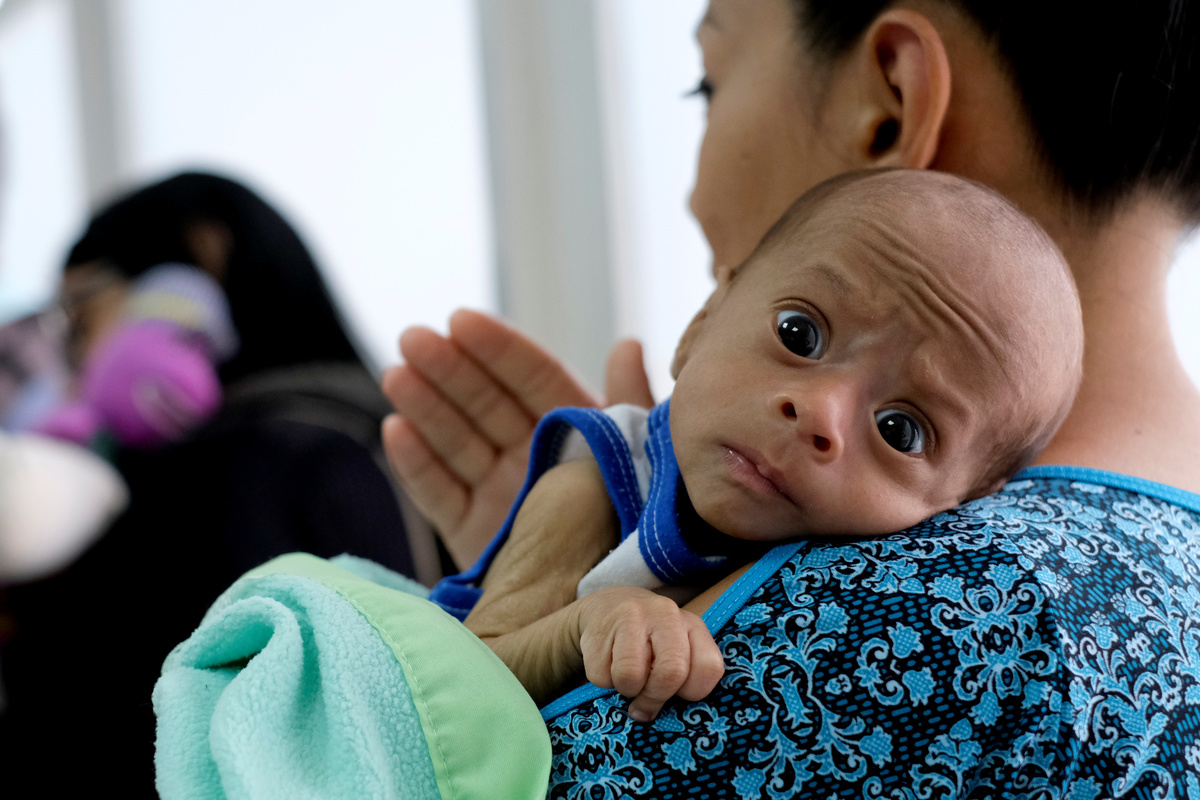 Francys Rivero holds her two-month old son Kenai, who has been diagnosed with malnutrition, while they wait for Kenai to receive tests at a clinic in Barquisimeto, Venezuela, August 14, 2019. REUTERS/Carlos Garcia Rawlins SEARCH "VENEZUELA MALNUTRITION" FOR THIS STORY. SEARCH "WIDER IMAGE" FOR ALL STORIES.