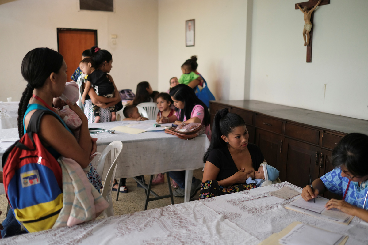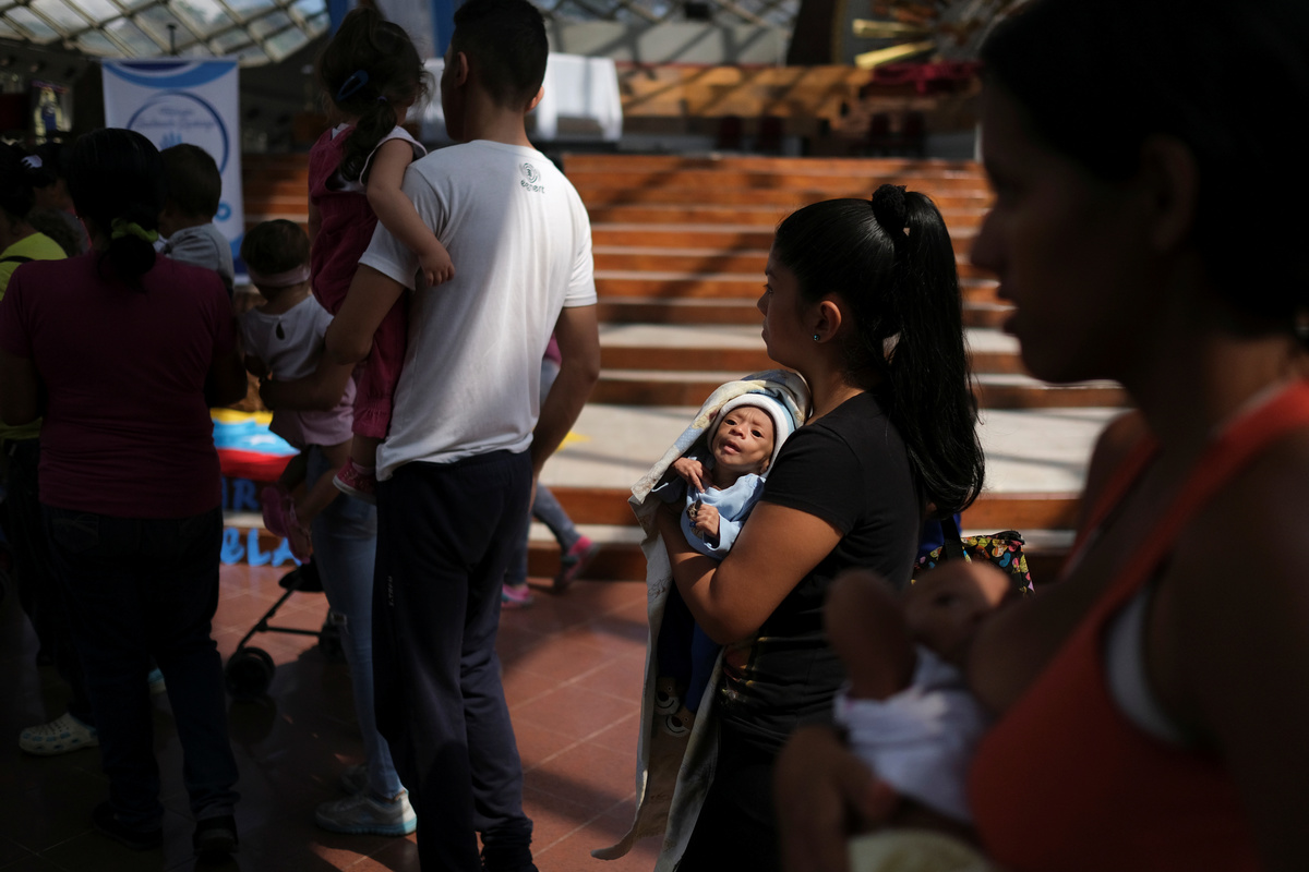 At the event, organized by Caritas, the Catholic aid organization, doctors performed a check-up. With donations from the charity, and financial assistance from siblings now living abroad, Rivero began supplementing her breast milk with baby formula.