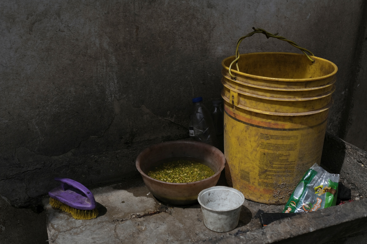 Split peas soak in a plastic bowl at Blanca Naveda's house, who says at least two of her three sons are underweight for their age, in Barquisimeto, Venezuela August 14, 2019. REUTERS/Carlos Garcia Rawlins SEARCH "VENEZUELA MALNUTRITION" FOR THIS STORY. SEARCH "WIDER IMAGE" FOR ALL STORIES.
