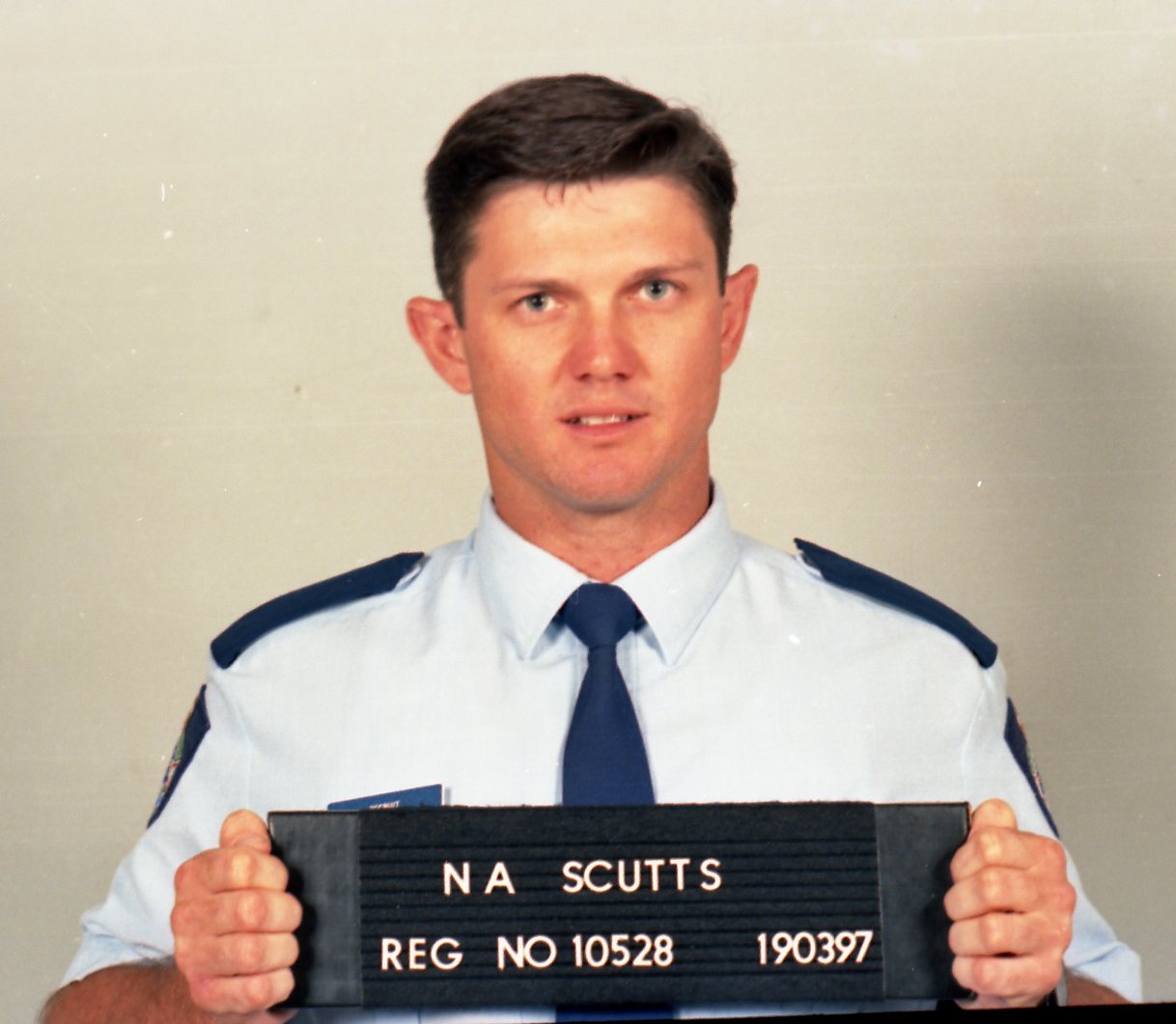 Senior Constable Neil Scutts was shot in the groin on March 24, 1999, while responding to reports of an armed robbery where staff and customers were allegedly held at gunpoint.