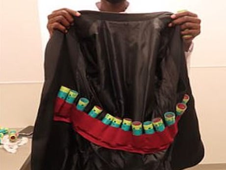 A man was arrested in early April with prosecutors claiming that he was found with 29 live birds smuggled on his person stuffed inside pink and orange plastic rollers.