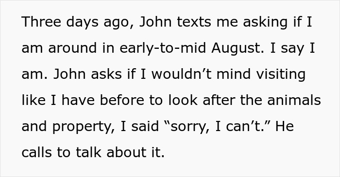 Feeling hurt and betrayed, he refused to grant John and his fiancée one of his usual favors as a way to set boundaries. This also prompted him to consider whether he was wrong to do so, and he turned to the internet for some answers.