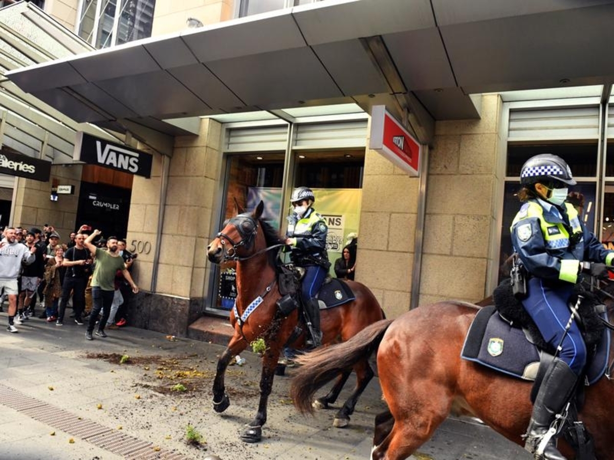 A man has been charged after allegedly assaulting police officers and pushing a police horse in the face during Sydney's anti-lockdown protest.