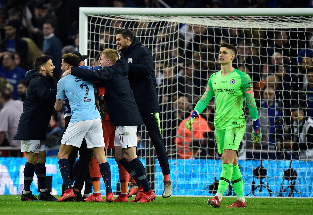 LONDON (Reuters) - Manchester City retained the English League Cup in a shootout after Chelsea manager Maurizio Sarri's hopes of a long-awaited first trophy ended in bizarre fashion on Sunday with his keeper Kepa Arrizabalaga openly disobeying orders.