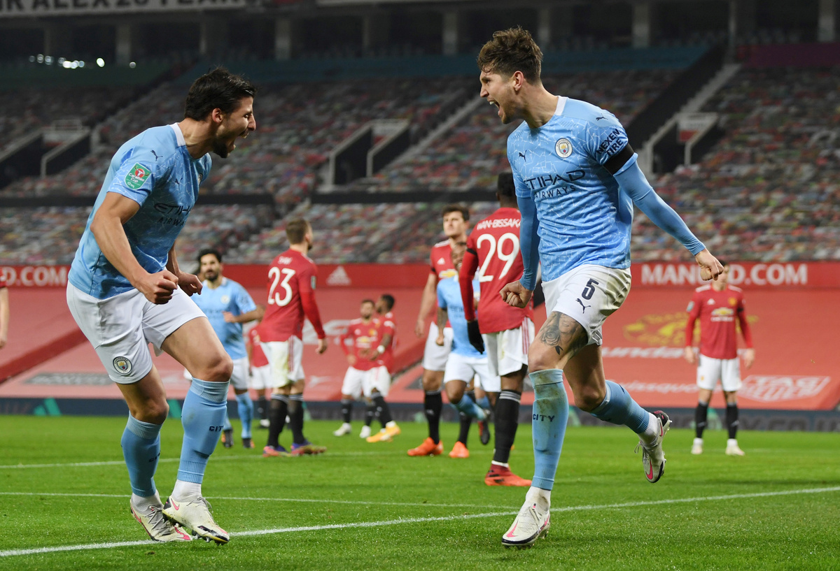 City went ahead five minutes after the break when Foden whipped in a free kick from the left through a crowded box and defender Stones bundled a cross home at the back post, the ball going in off his thigh.