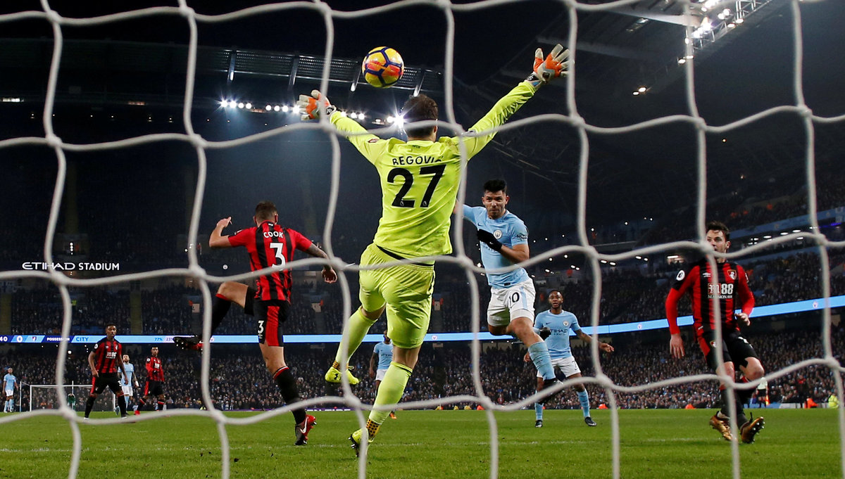City needed 27 minutes to take the lead against Bournemouth and it was fitting that Aguero was the man to score it with a diving header as he registered his 100th home goal for the club.