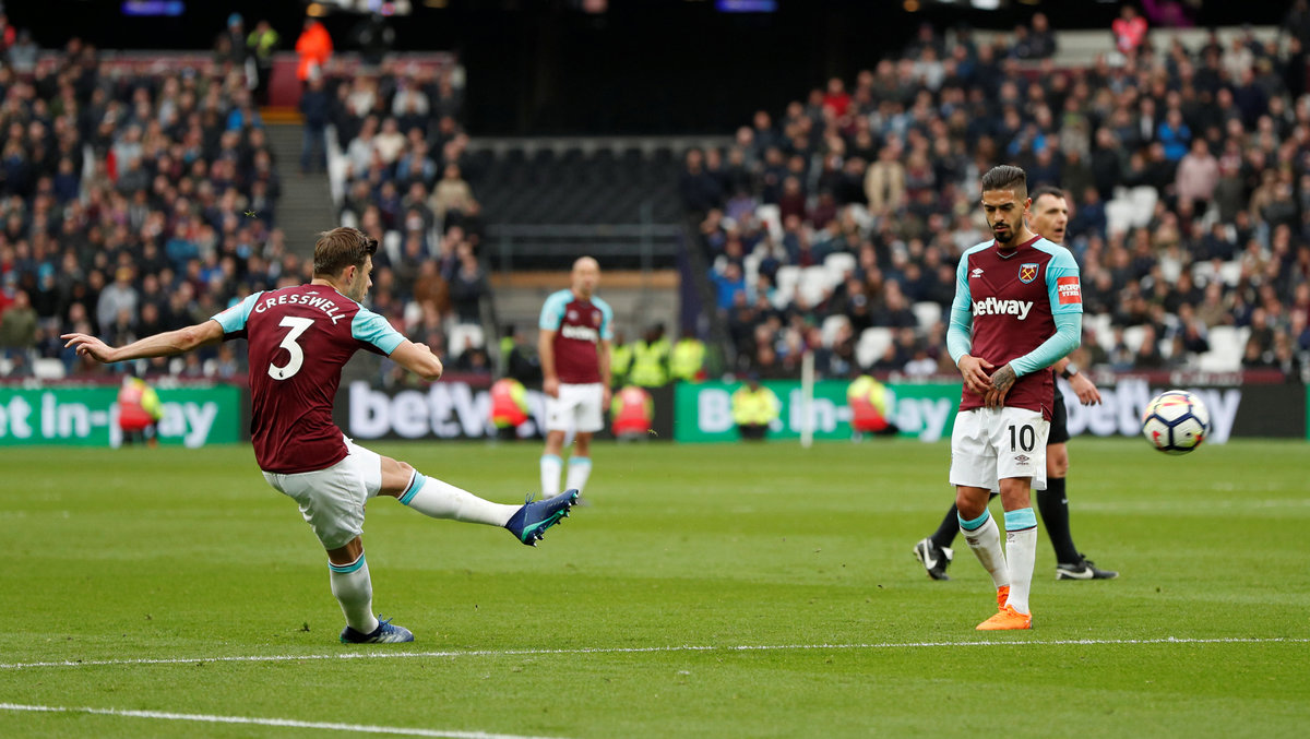West Ham did improve and got themselves back in the match after Cresswell curled a free kick into the bottom corner.