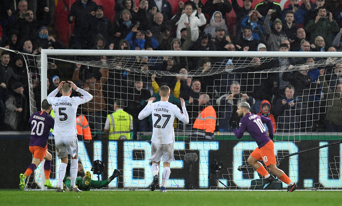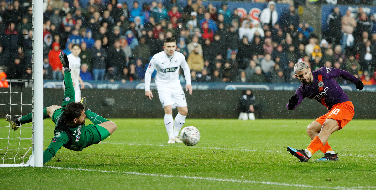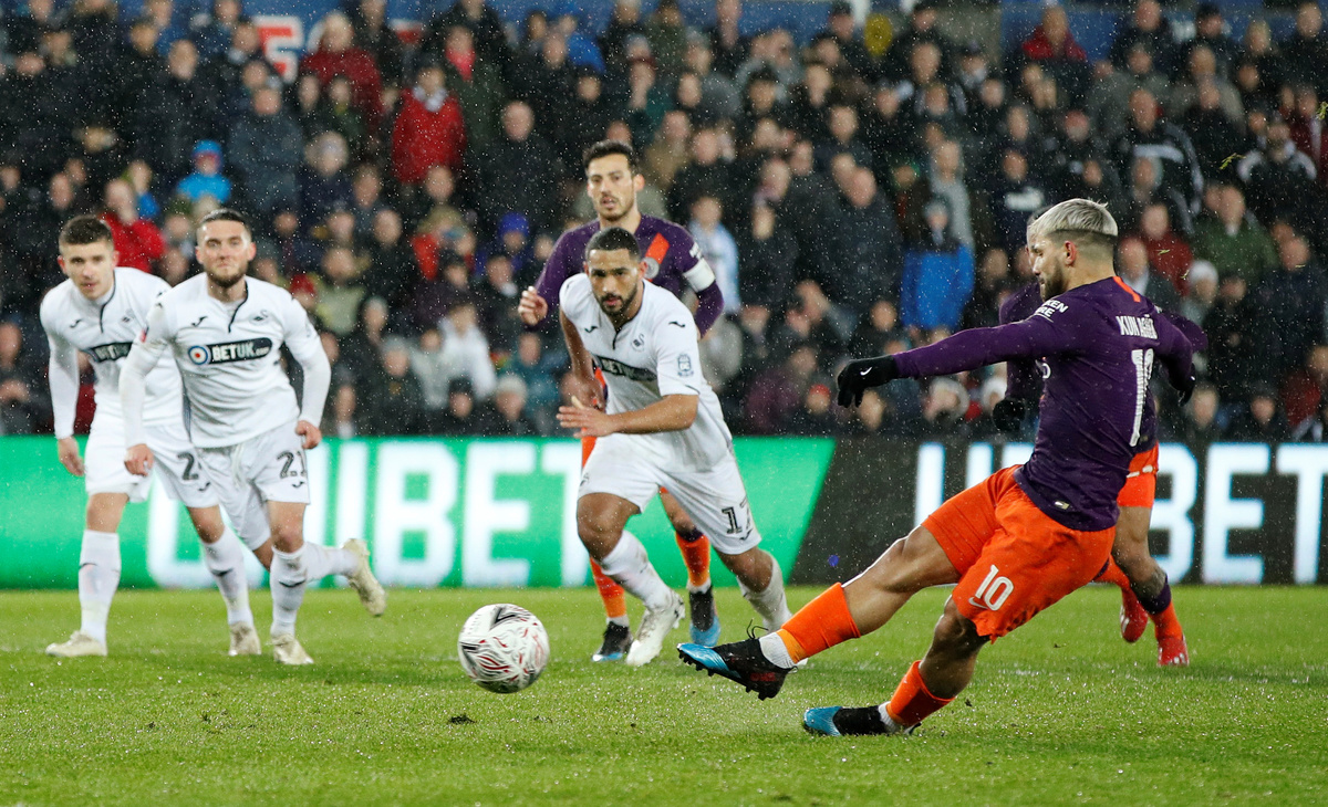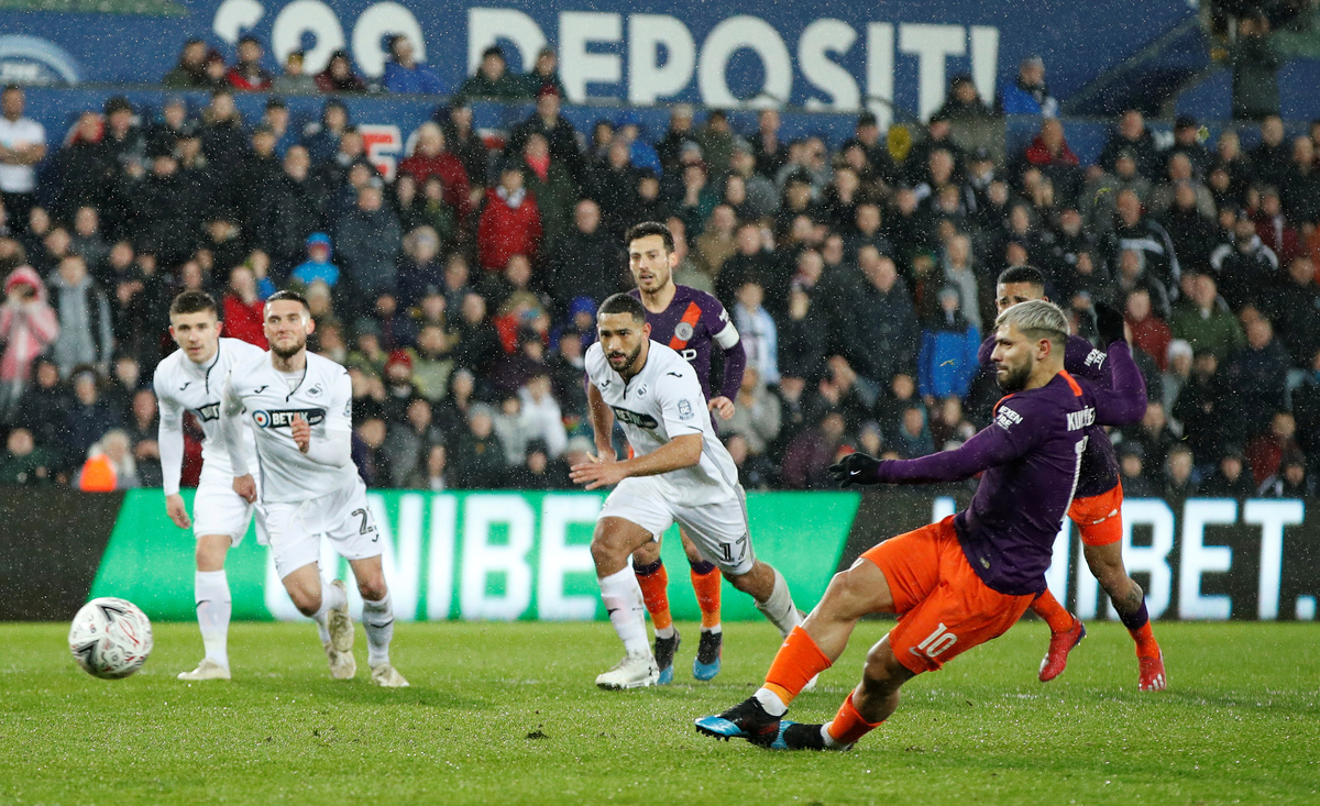 From then on in it was all Manchester City and an own goal off the back of Swansea goalkeeper Kristoffer Nordfeldt after substitute Sergio Aguero's 77th-minute penalty had hit the post levelled the tie.